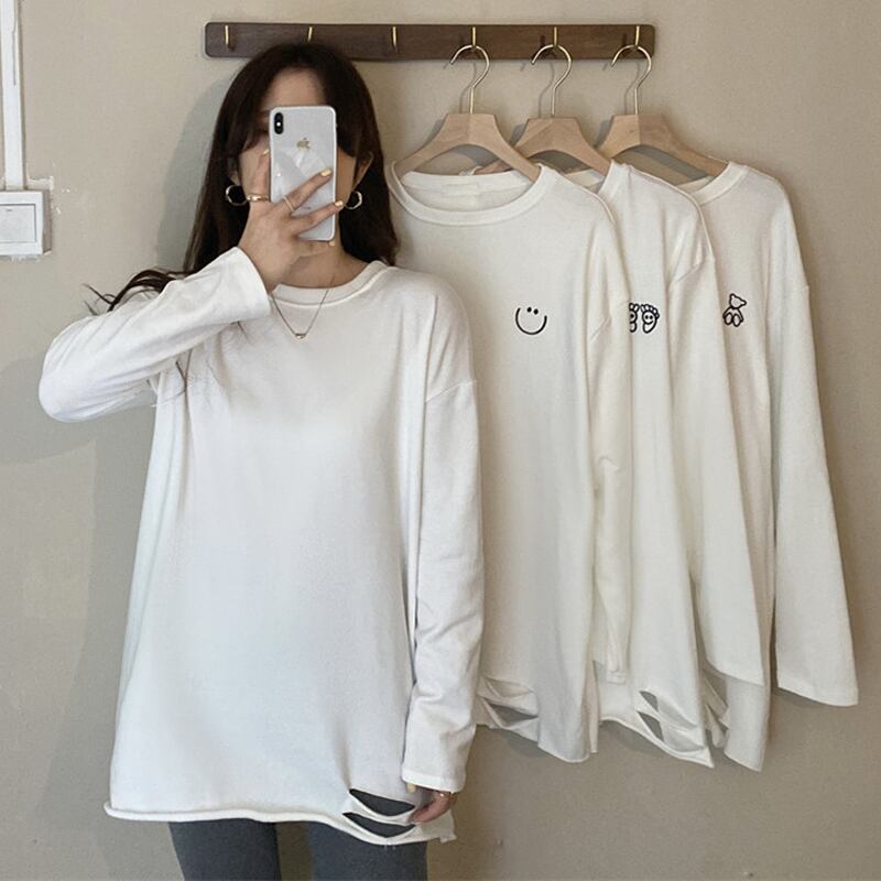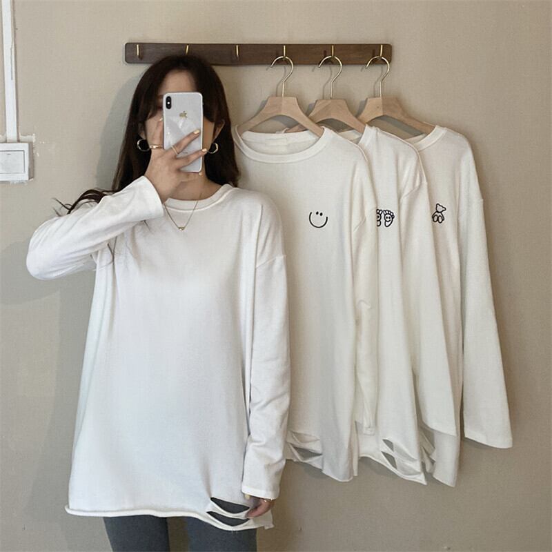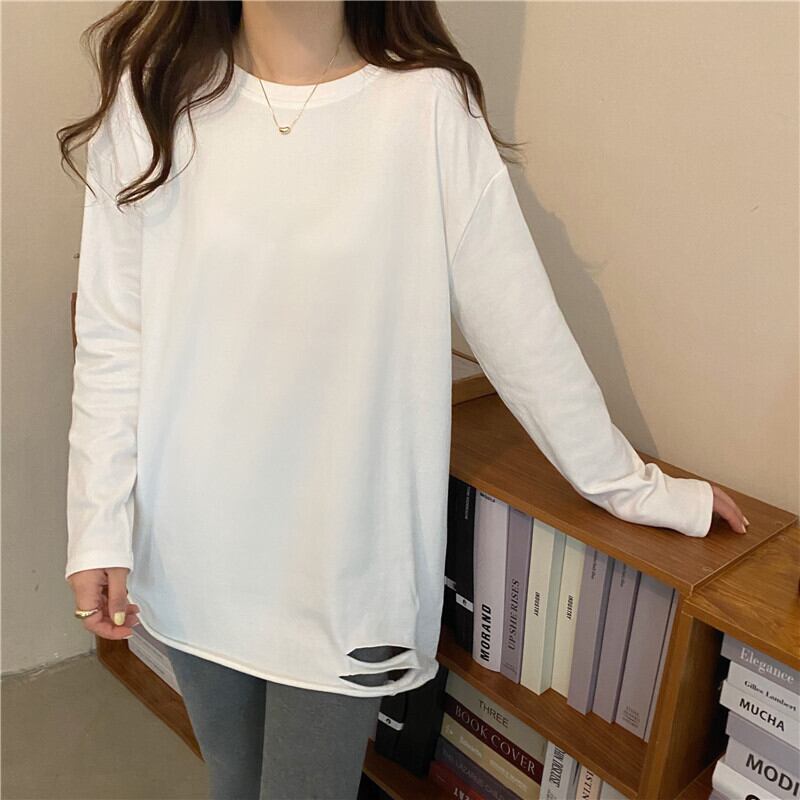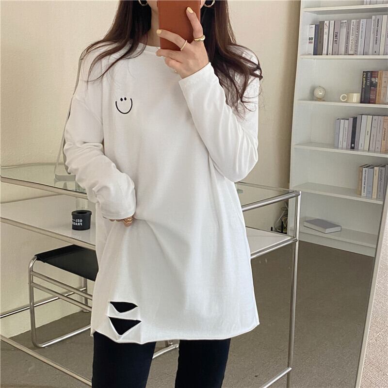 ホワイトTシャツスプリング秋物セーター ゆったりルーズ ロング 春物 オータム 長袖 コーデ marchs6767588223016