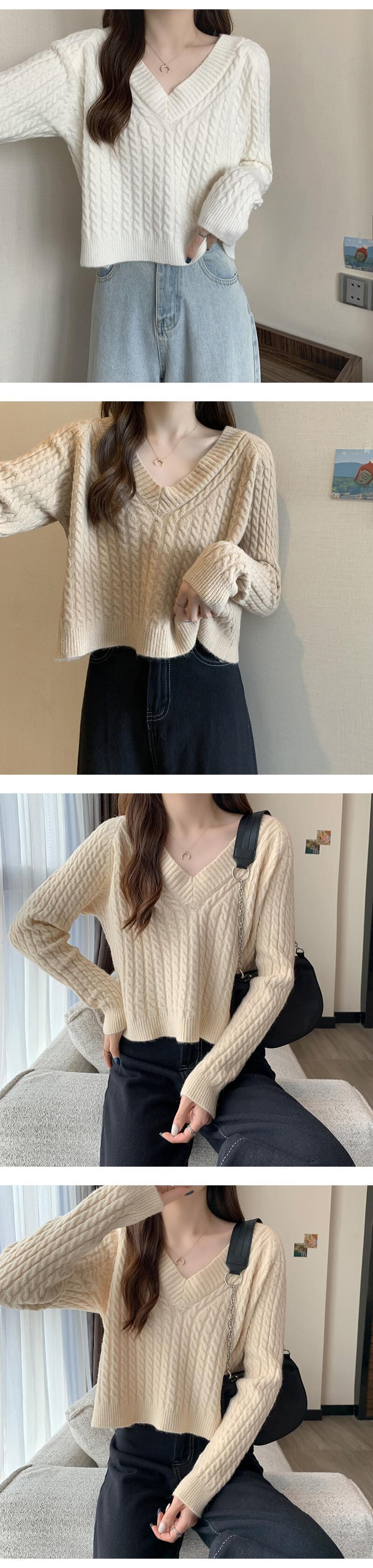 秋物ウィンタールーズVネックプルオーバー セーター レディーススタンダードニット レトロ オータム 冬物 コーデ Marchs55222650920