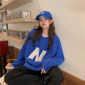 ブルーセーター 秋物ウィンタールーズスタイルオーバーサイズ オータム 冬物 コーデ marchs6770320969940