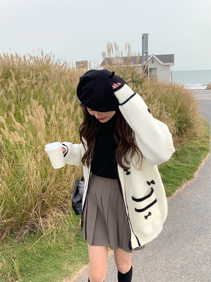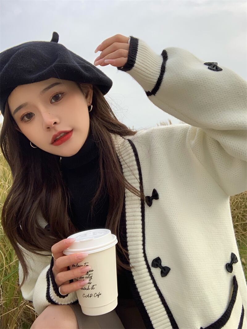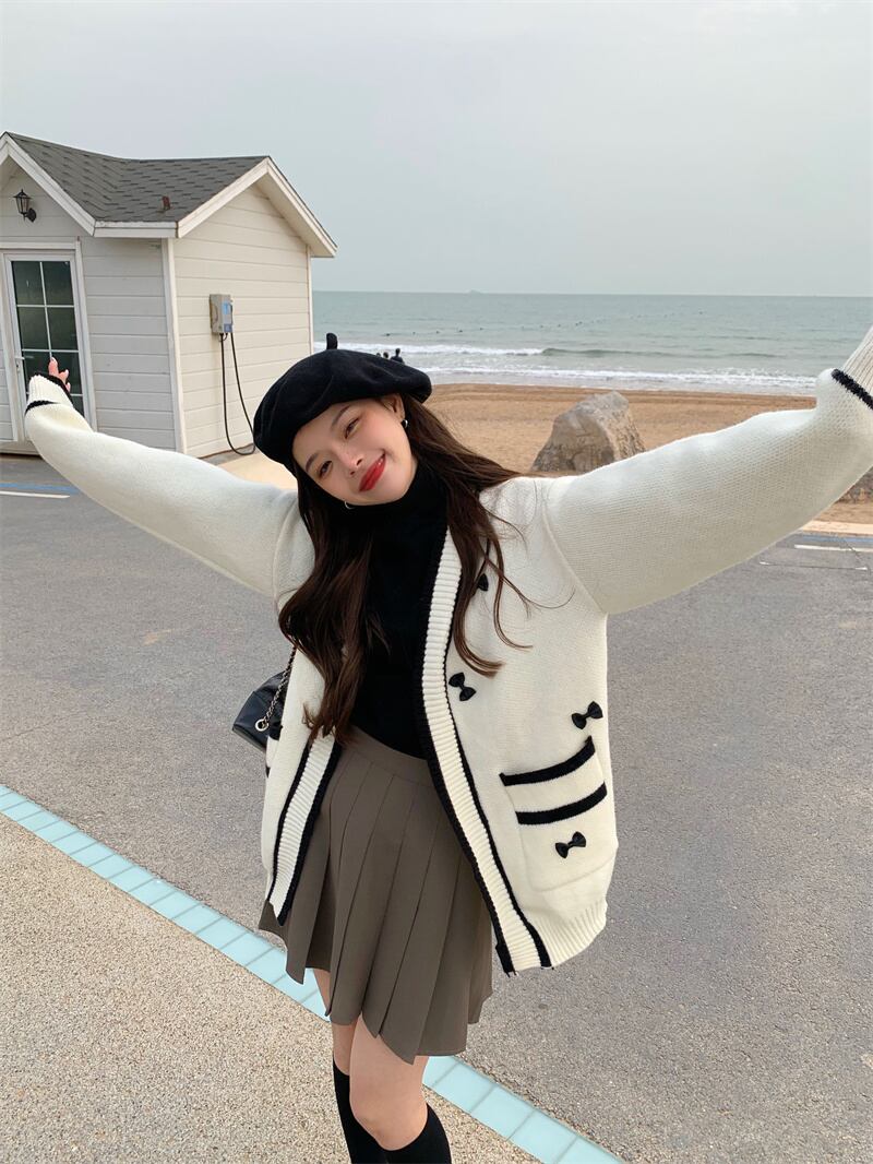 ホワイトセーター ジャケット 秋物ウィンタールーズスタイルVネックニットカーディガン オータム 冬物 コーデ marchs6729225229527