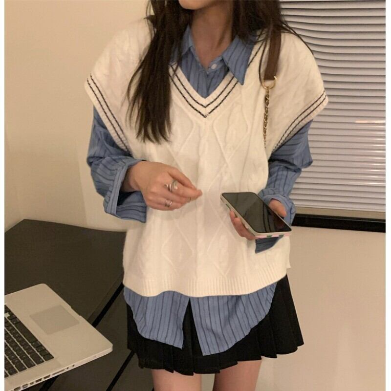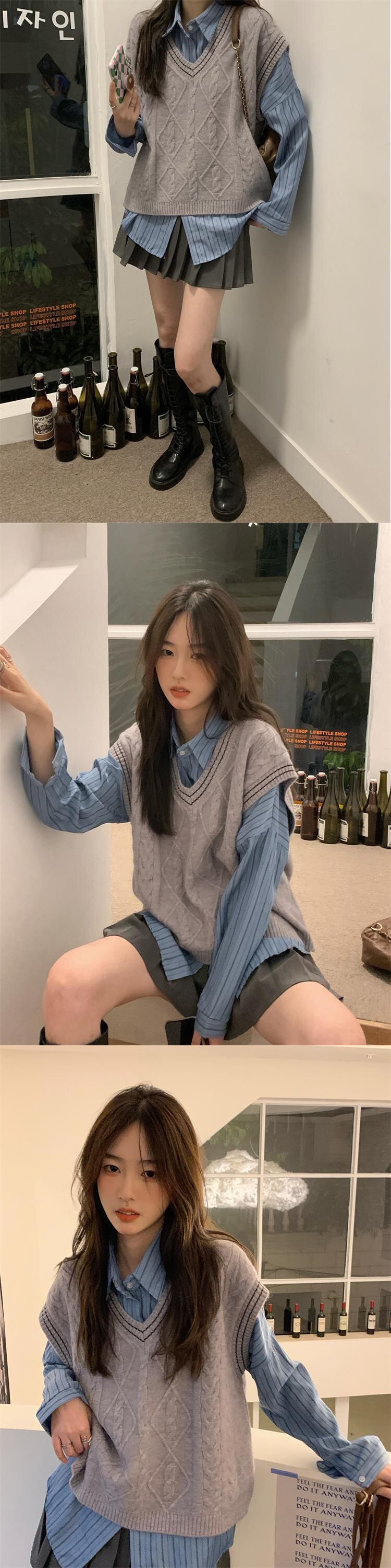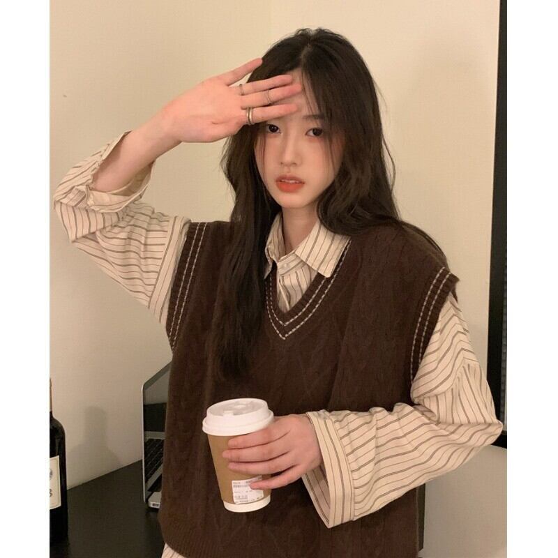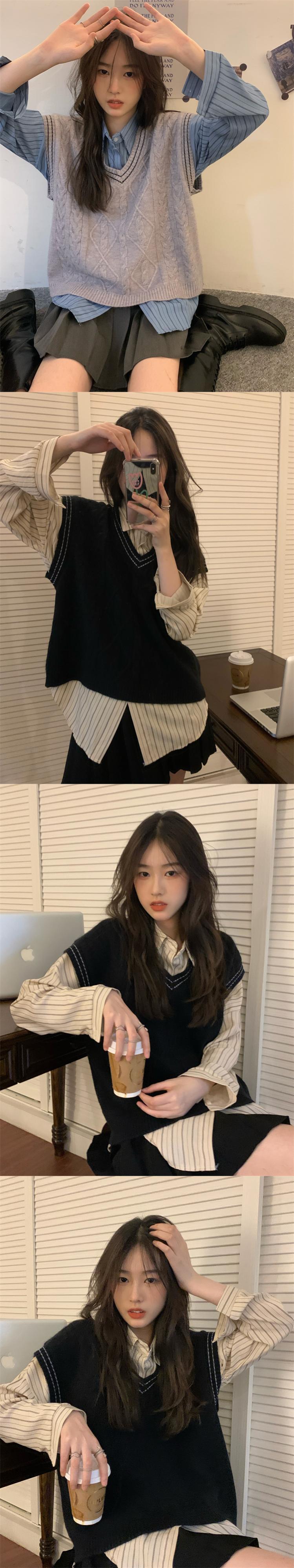 色:グレーのベスト,黒のベスト,ミルキーアプリコットベスト,コーヒー色のベスト,ベージュのストライプシャツ,ブルーストライプシャツ,グレースカート,カードカラースカート,黒スカート