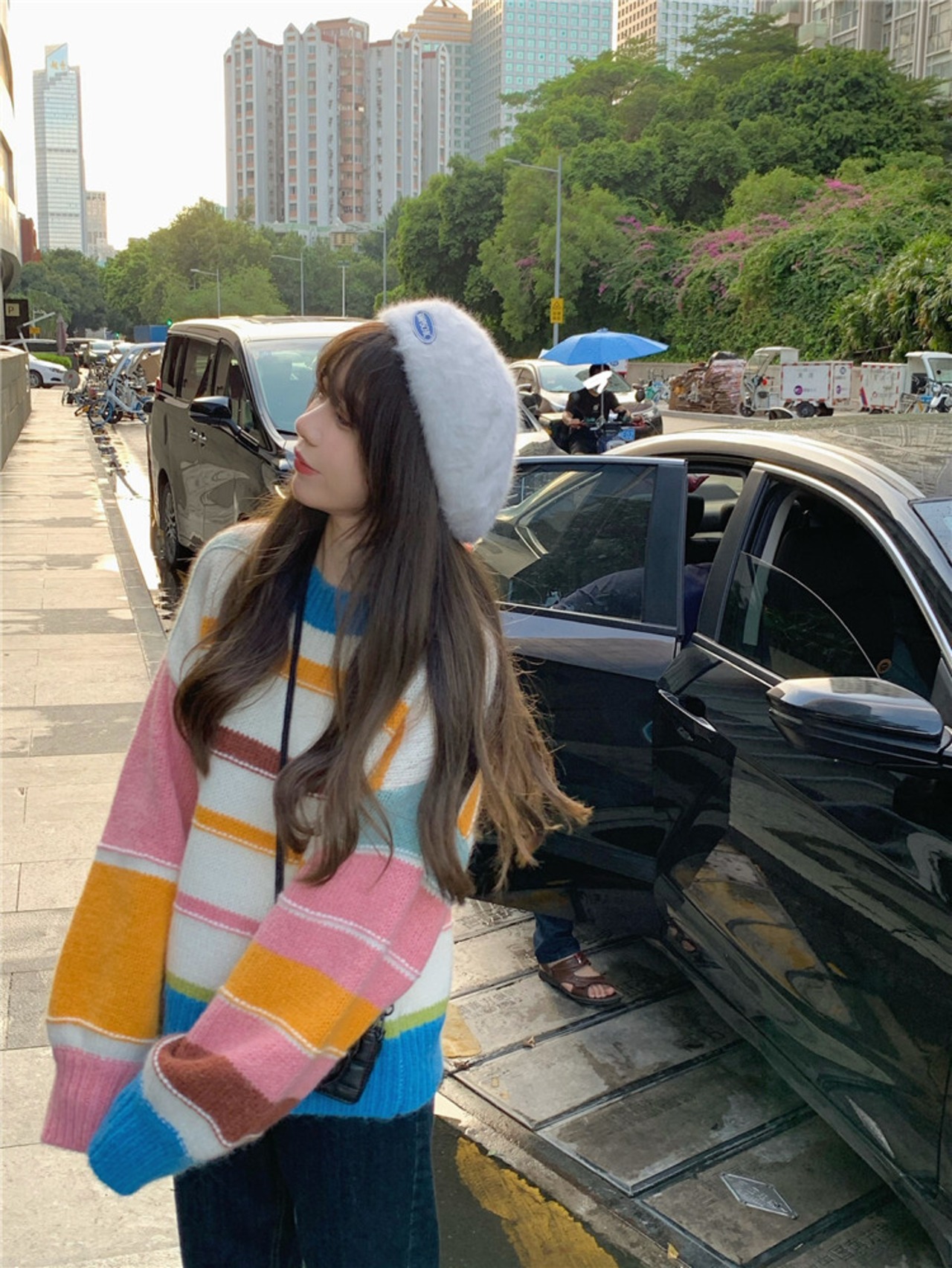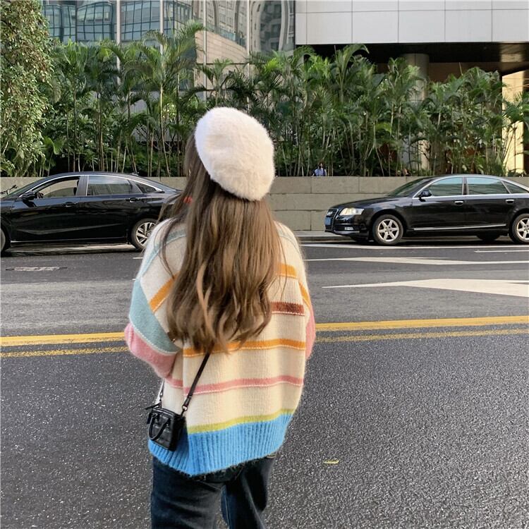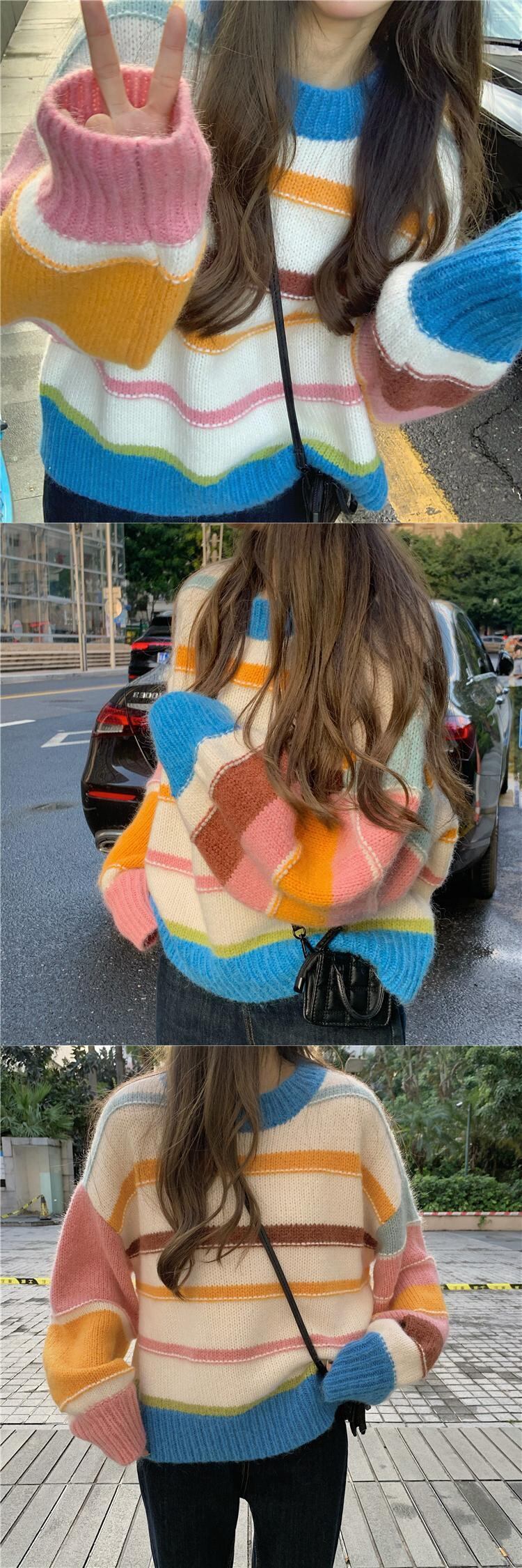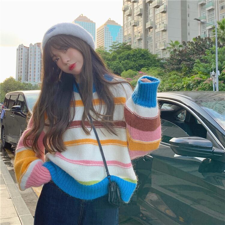 ストライププルオーバー セーター 秋物ウィンタースタイル韓国ファッションルーズ オータム 冬物 コーデ Marchs75398635462