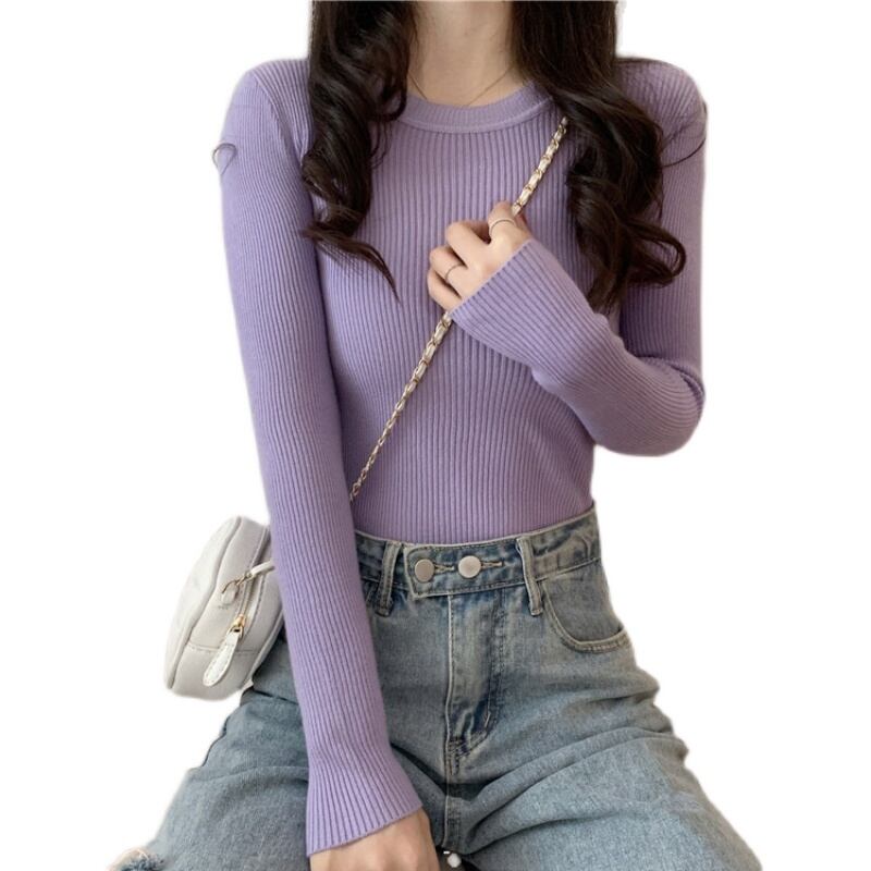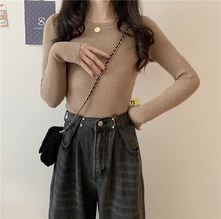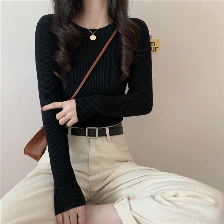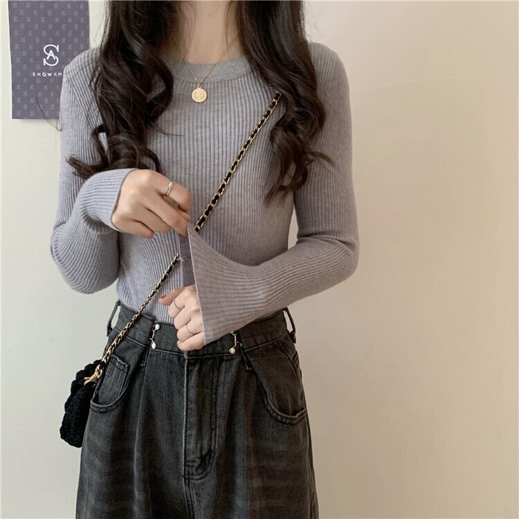 ラウンドネックセーター ゆったり薄手ソリッド カラーレディースベーシック Oネック ソリッドカラー コーデ Marchs33884245068