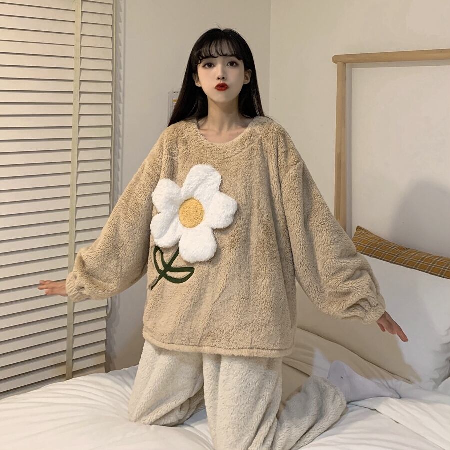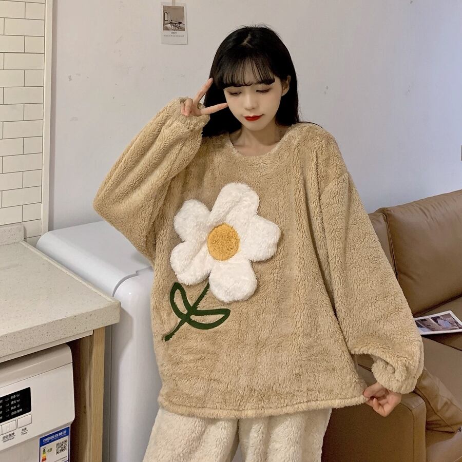 パジャマ ルームウェアレディースフランネル レッド 刺繍 大人ガーリー スウィート キュート カジュアル コーデ marchs6751243448460