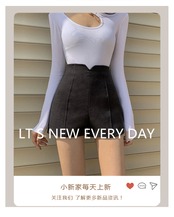 ショートレディース秋物ウィンターブラックハイウェストウェストスリムカジュアルショーツ オータム 冬物 ウエスト コーデ Marchs87068832679