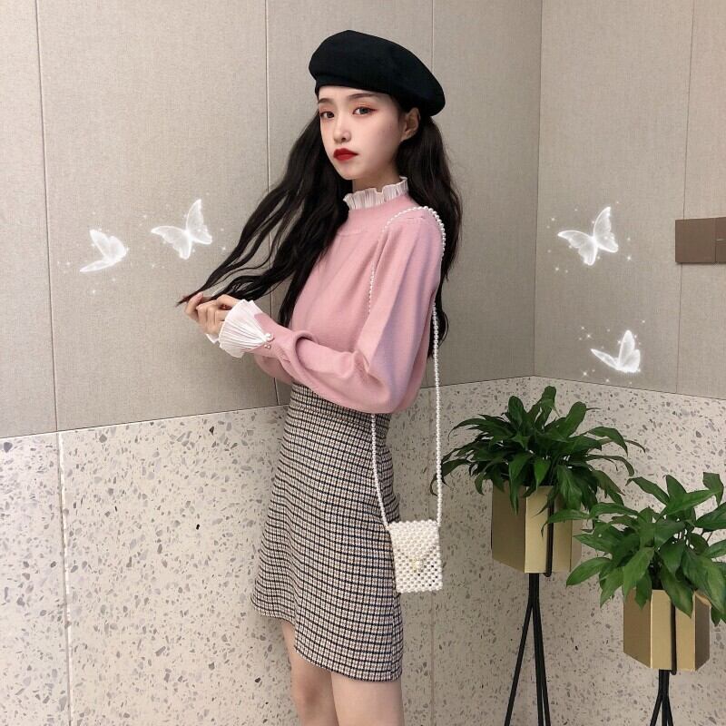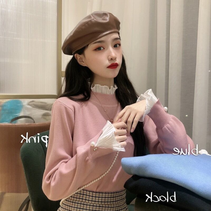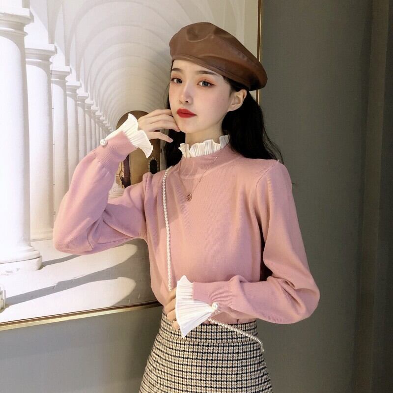 ニットゆったりシャツ 秋物ウィンターセーター トップス ロング ピンク オータム 冬物 長袖 コーデ Marchs88954458930