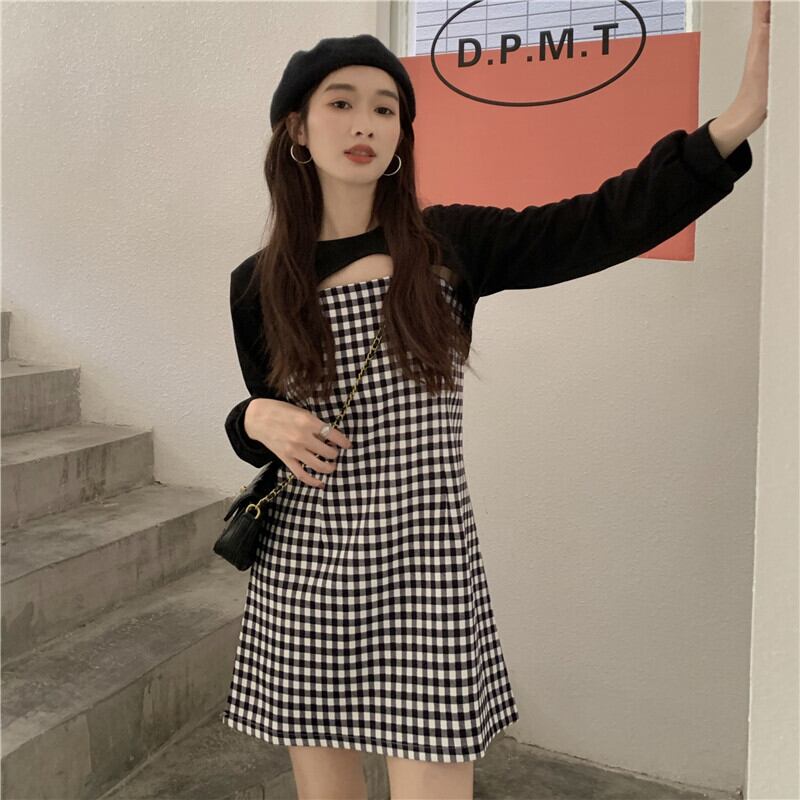 格子柄ワンピースブラウス スプリング秋物スタイルスカート 春物 オータム コーデ marchs6783606424012