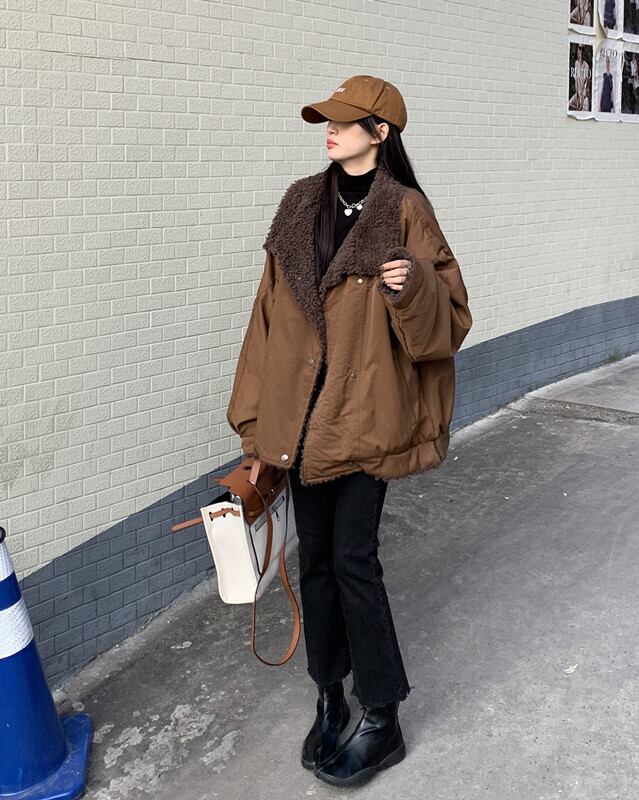 韓国ファッションルーズ薄手ソリッド カラーウールコート ウィンター 冬物 ソリッドカラー スタイル コーデ marchs6797266909462