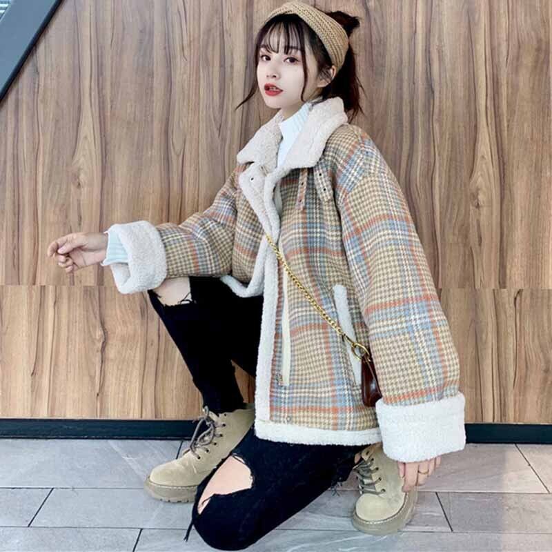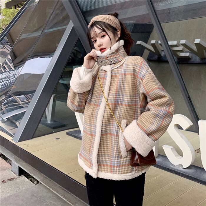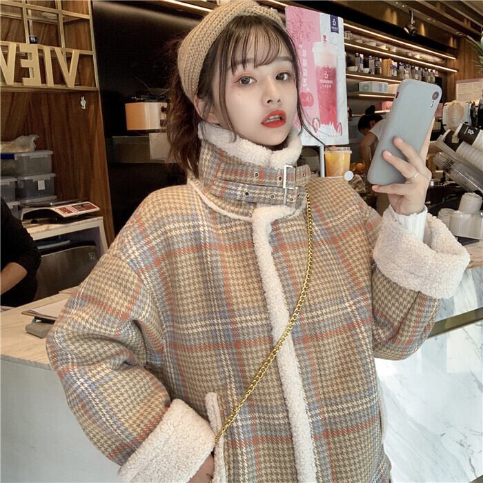 スタンダード格子柄ショートコート ルーズジャケット レディース レトロ コーデ marchs6782801578273