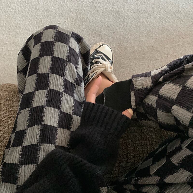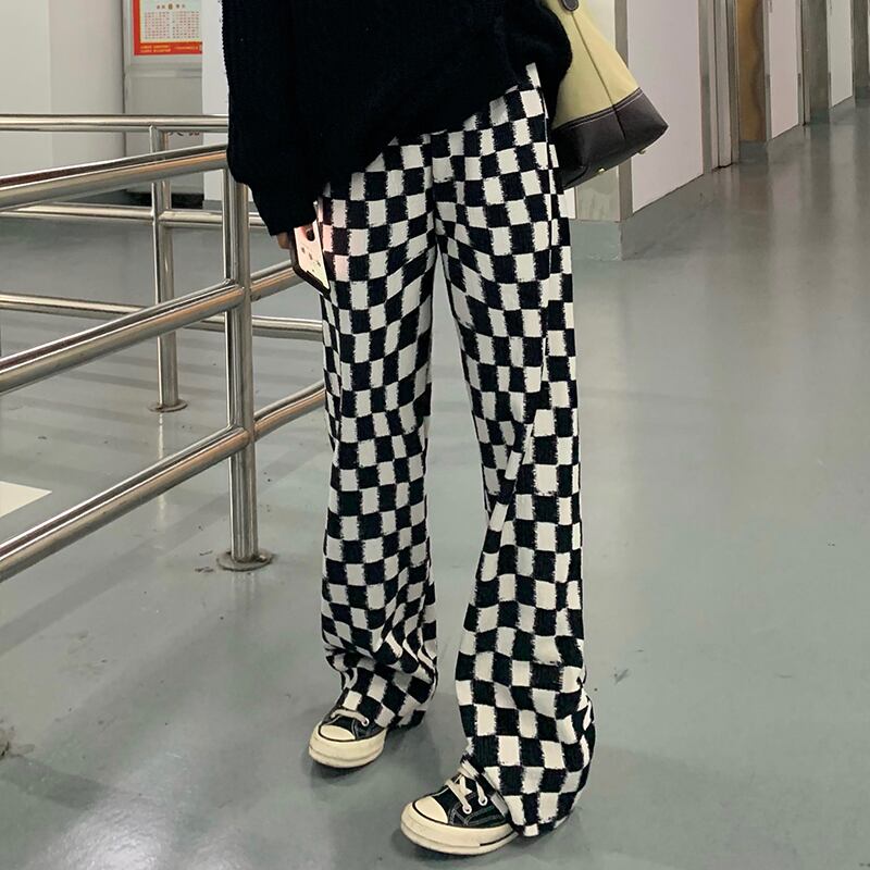 厚みブラックホワイトカジュアルパンツ スタンダードハイウェストウェストルーズプリーツ レトロ ウエスト コーデ marchs6798014273186