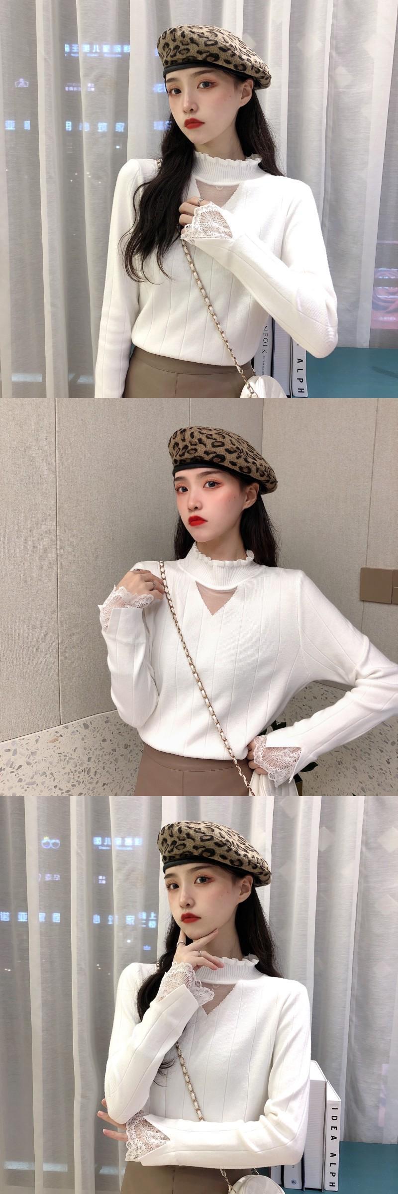 ブラックセーター 秋物ウィンタースタイルレースカラーゆったりトップス オータム 冬物 ステッチ コーデ Marchs77384945740