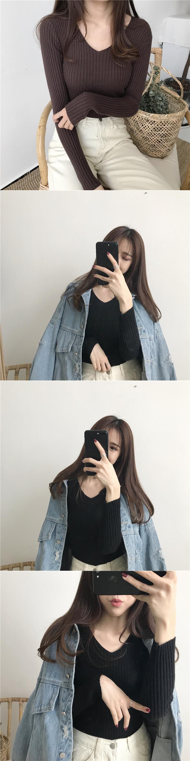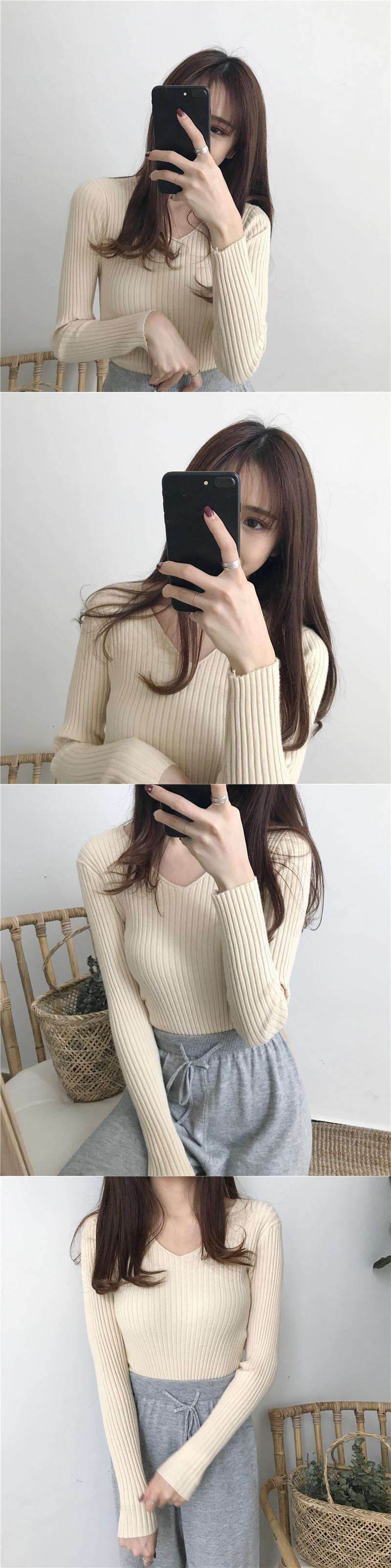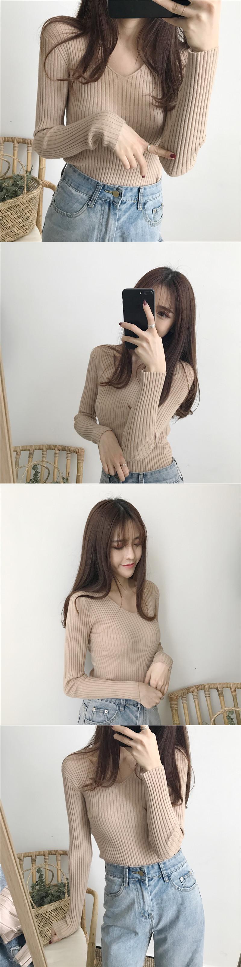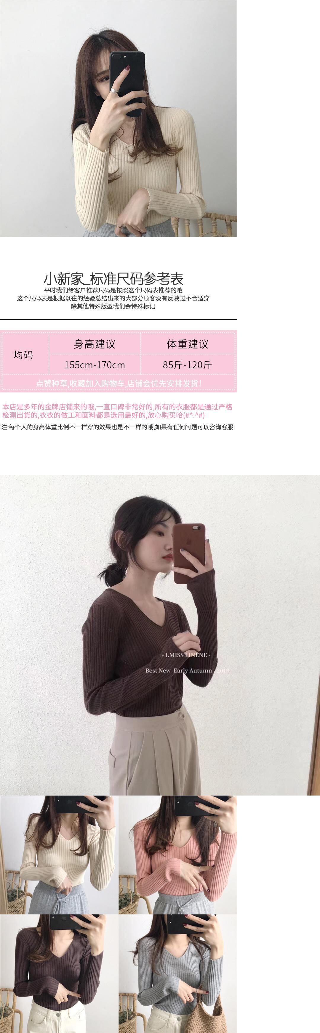 スプリング秋物薄手Vネックニットストレッチゆったりセーター ロング エラスティック 伸縮 春物 オータム 長袖 コーデ Marchs2903500098