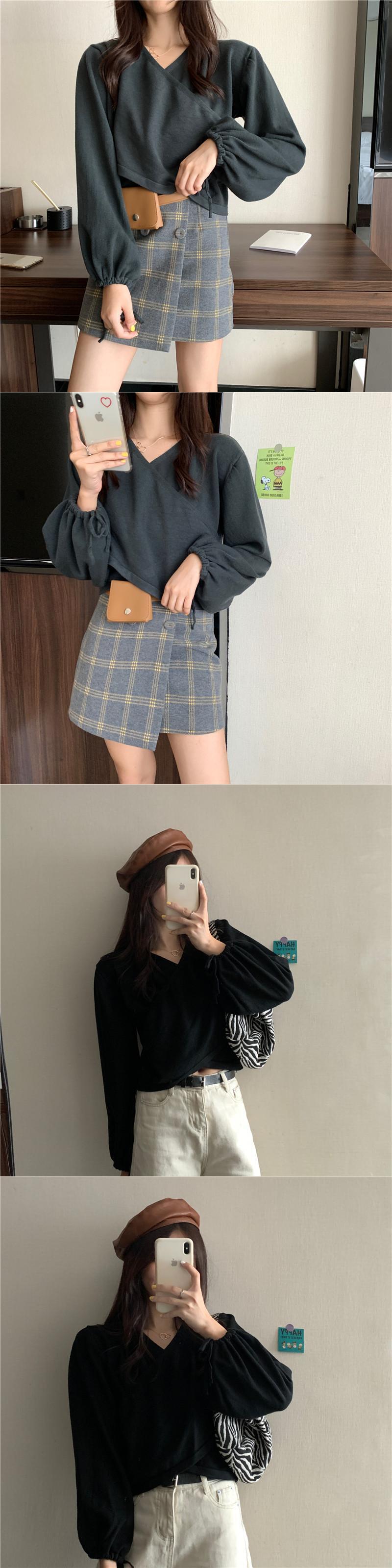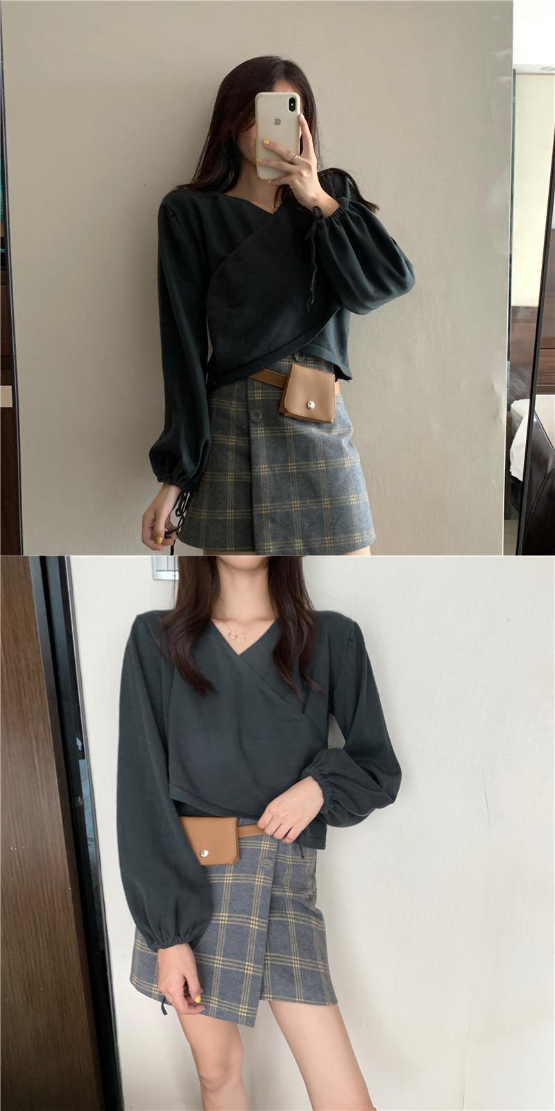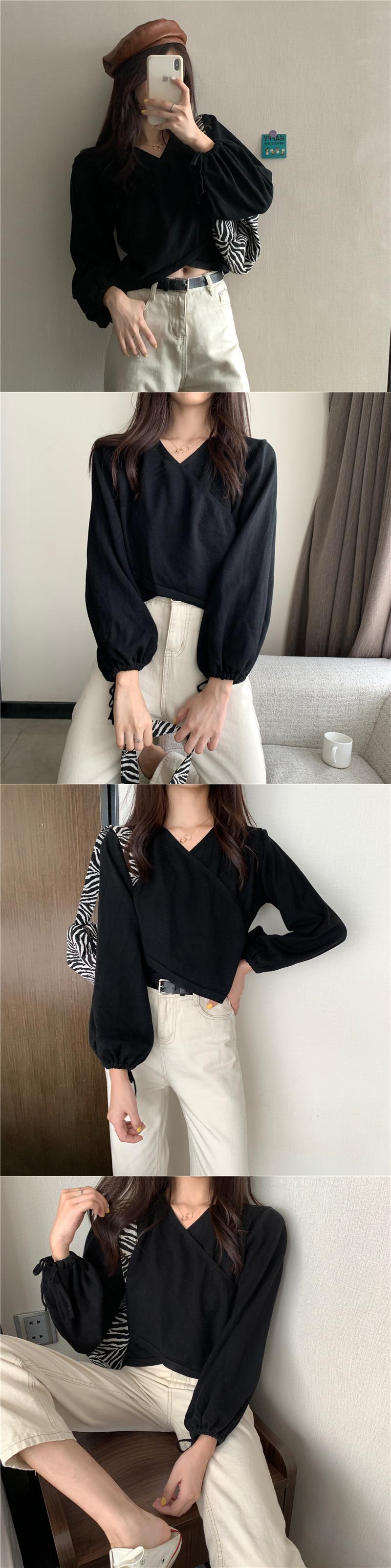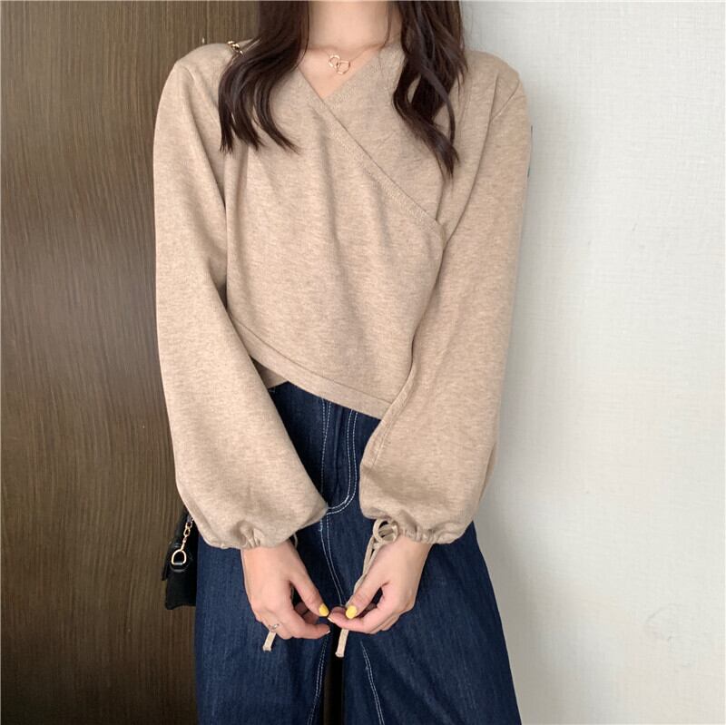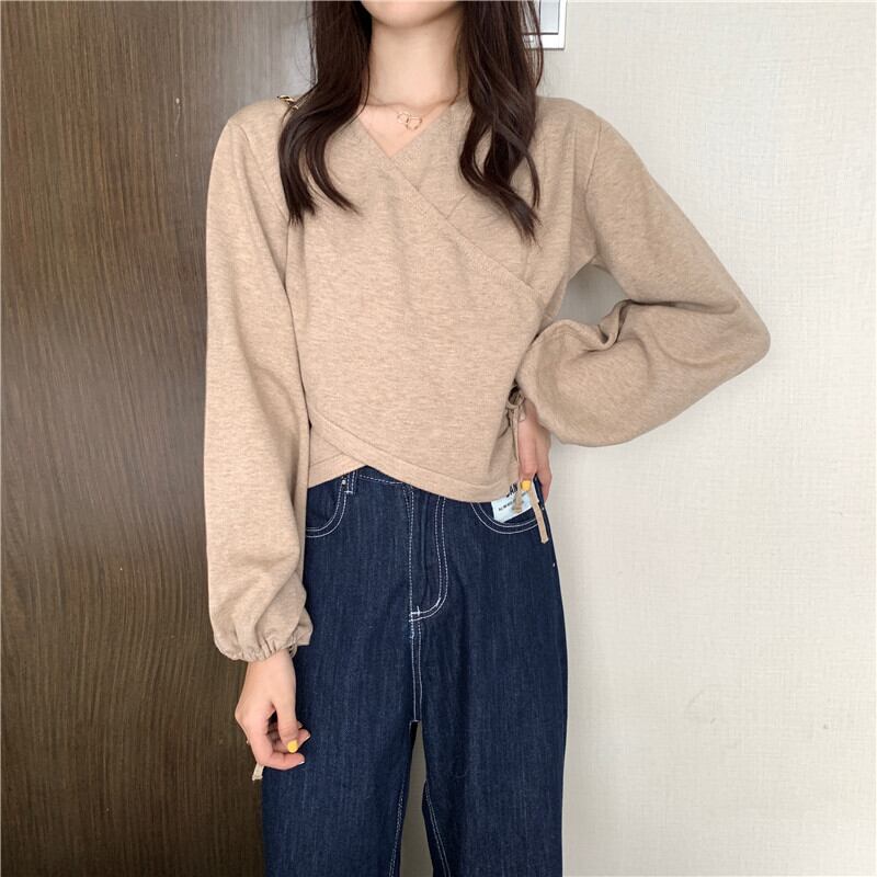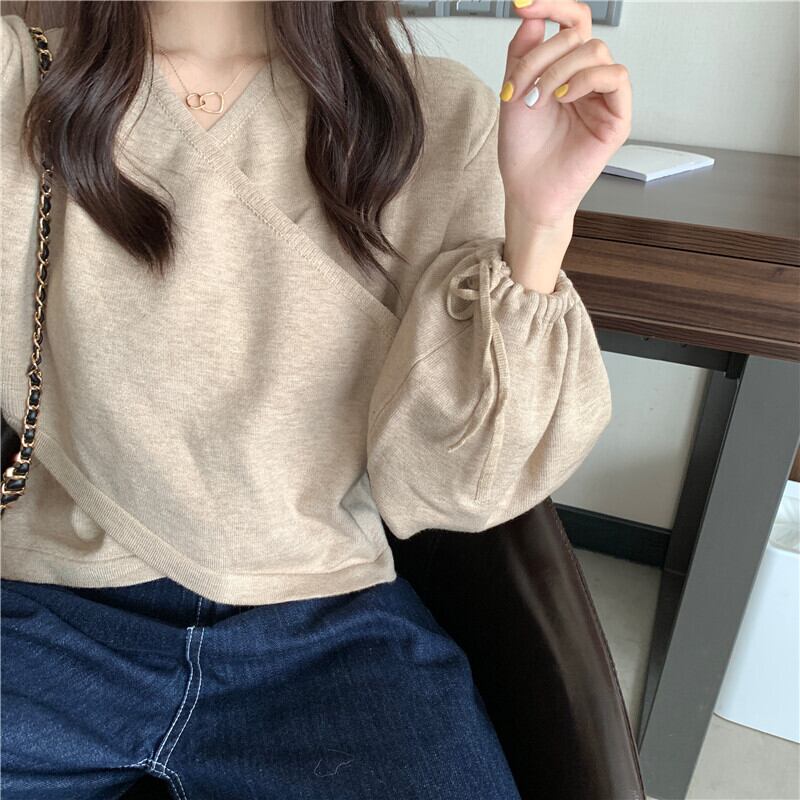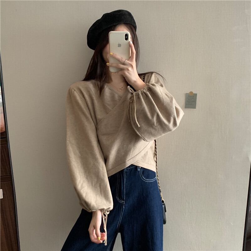 ニットショートトップス ハイウェストウェストパンツ ロング韓国ファッションルーズVネックTシャツNEW 長袖 スタイル ウエスト コーデ Marchs22935247397