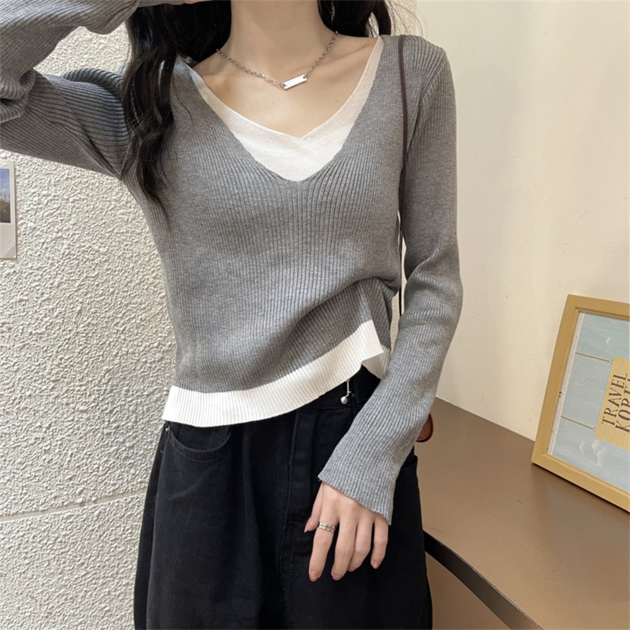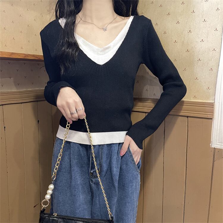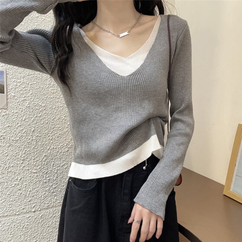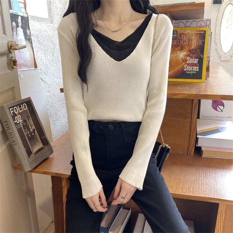 薄手秋物ニットセーター スタイルゆったりシャツ トップス ロング オータム 長袖 コーデ Marchs93020593554