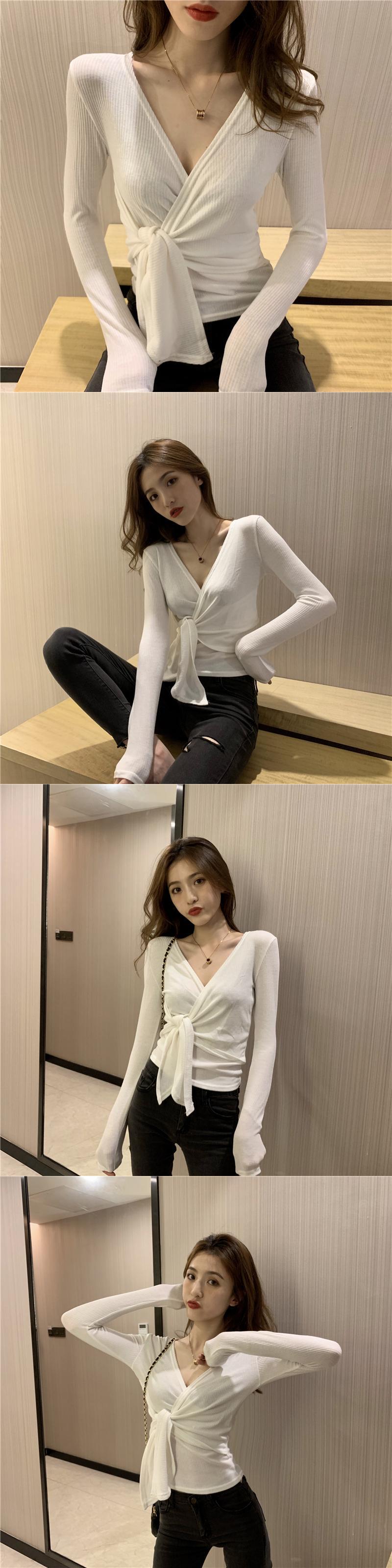 クロスVネックトップス ゆったりシャツ 秋物Tシャツ ロング オータム 長袖 コーデ Marchs73374640921