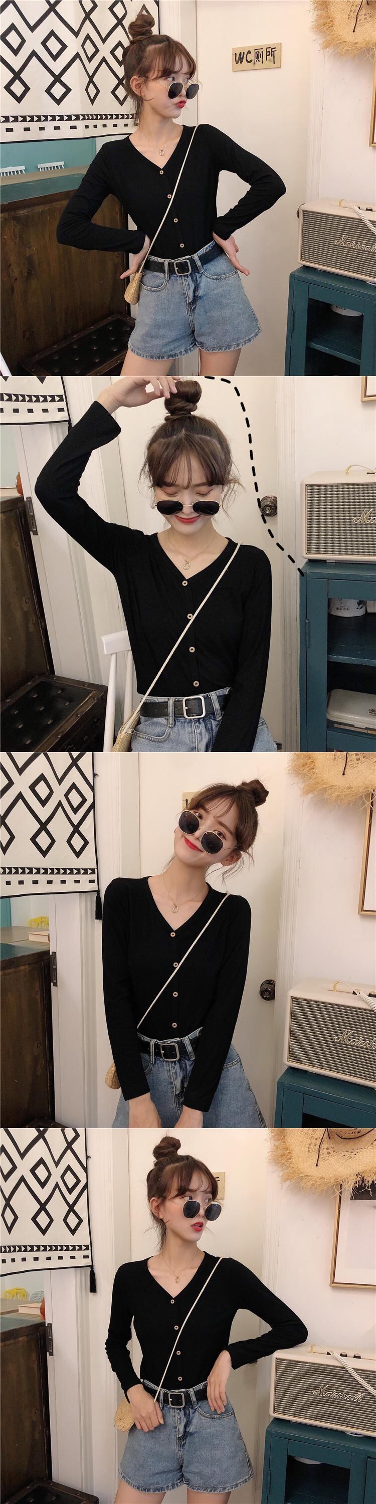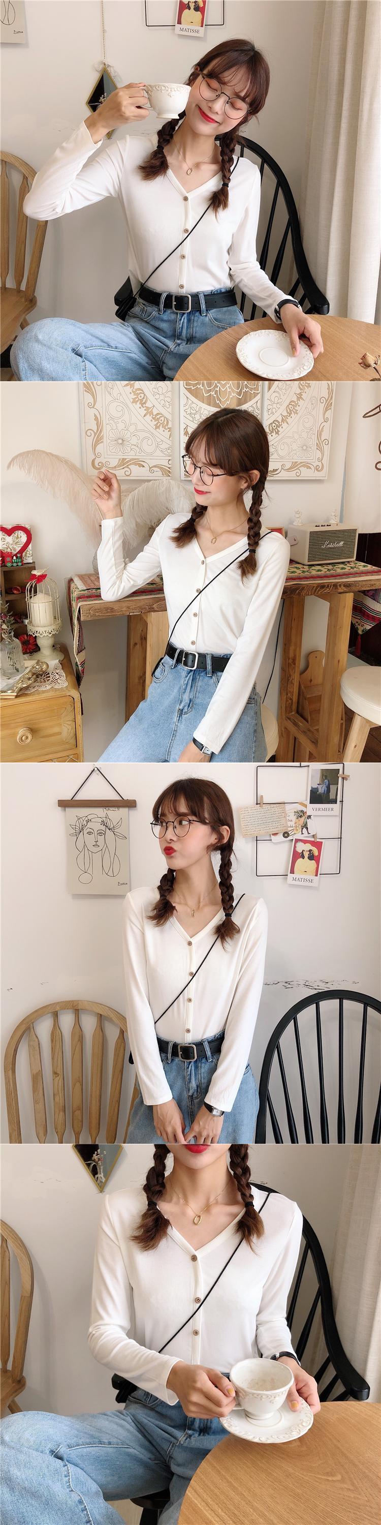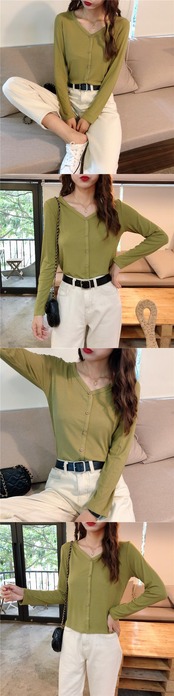 秋物トップス 薄手ルーズVネックTシャツスタイル ロング オータム 長袖 コーデ Marchs73944628445