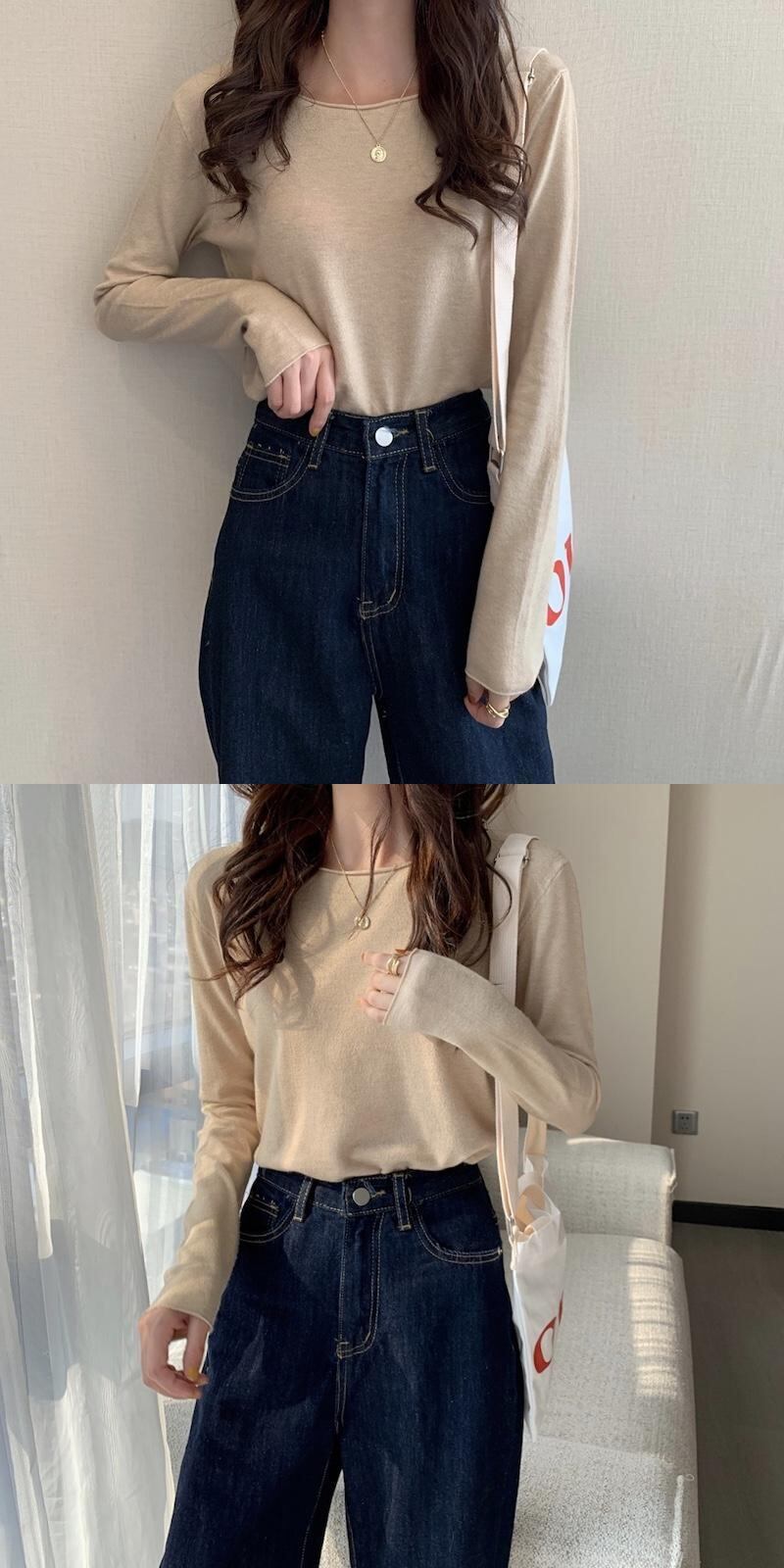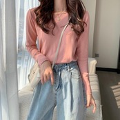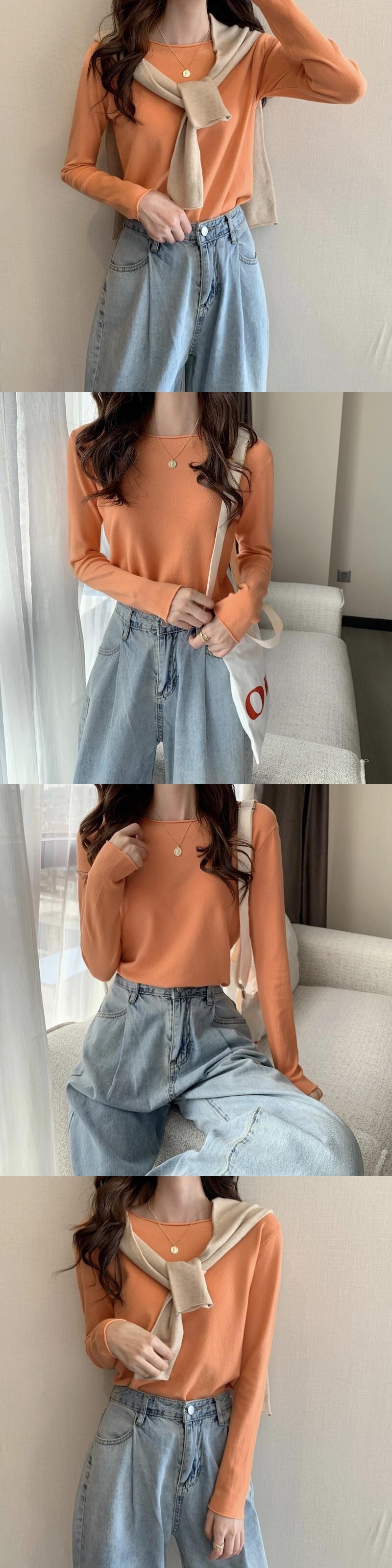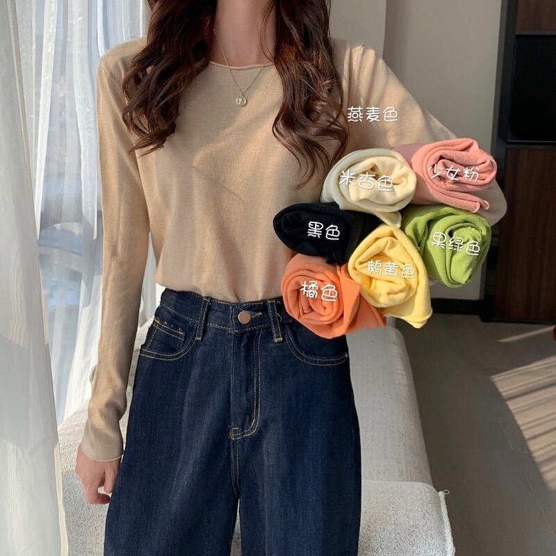 オレンジTシャツシャツ スプリング秋物韓国ファッションニットゆったり薄手トップス ロング 春物 オータム スタイル 長袖 コーデ Marchs27453572013