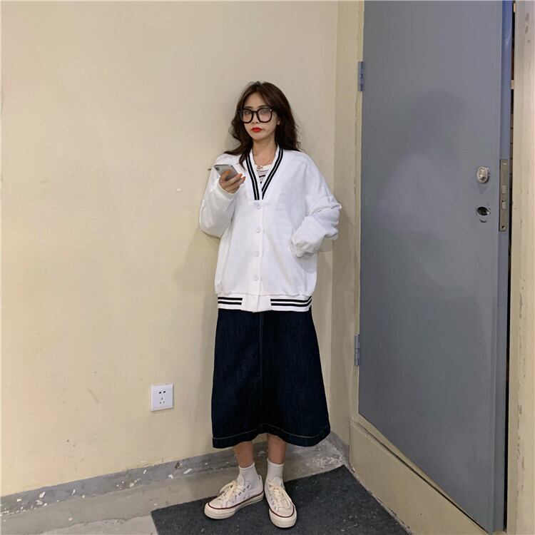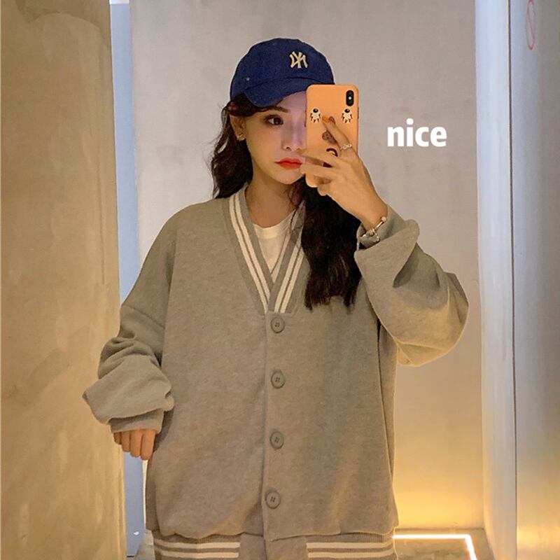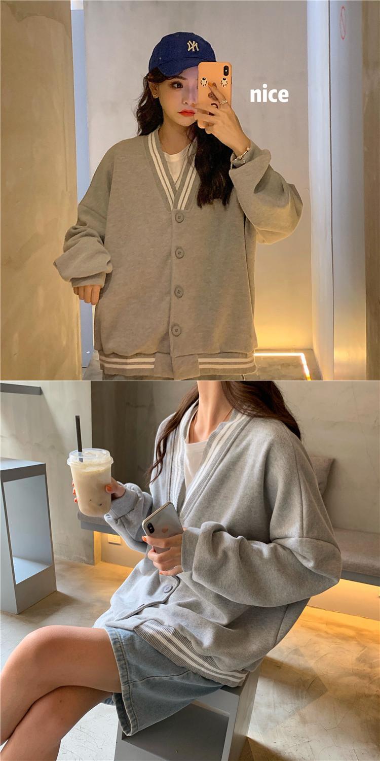 ニットジャケット スプリング秋物韓国ファッションカラーストライプVネックルーズセーター カーディガン 春物 オータム スタイル コーデ Marchs97260617617