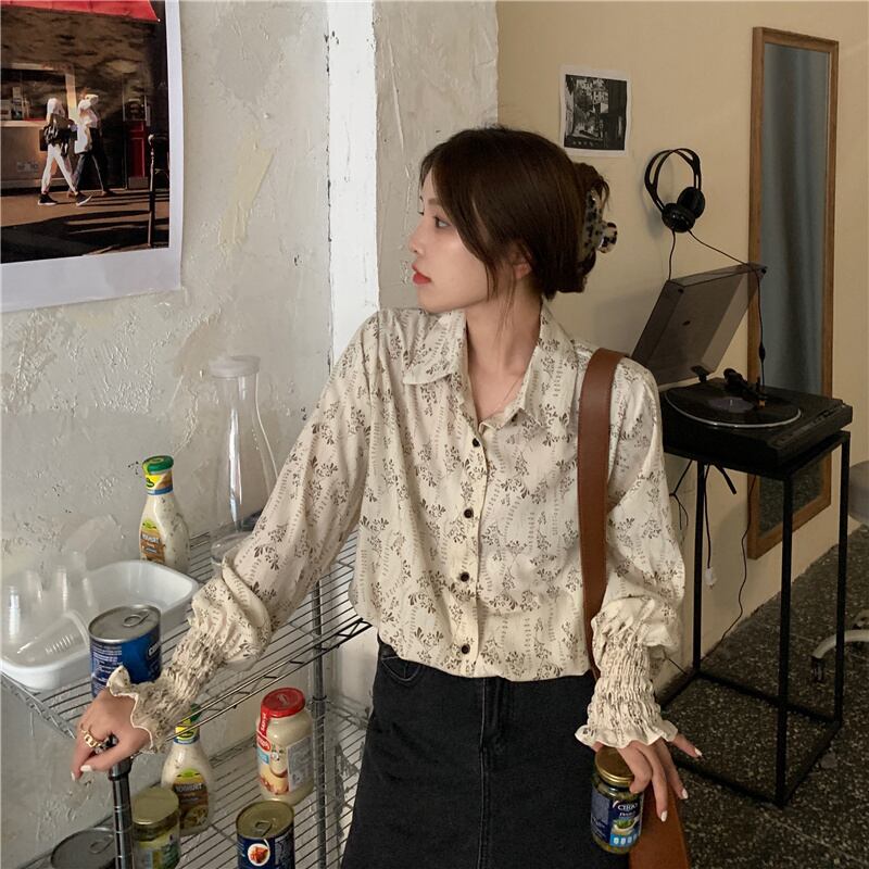 フローラルシャツ スプリング秋物スタンダード ロング レトロ 春物 オータム 花柄 長袖 コーデ Marchs80903749731