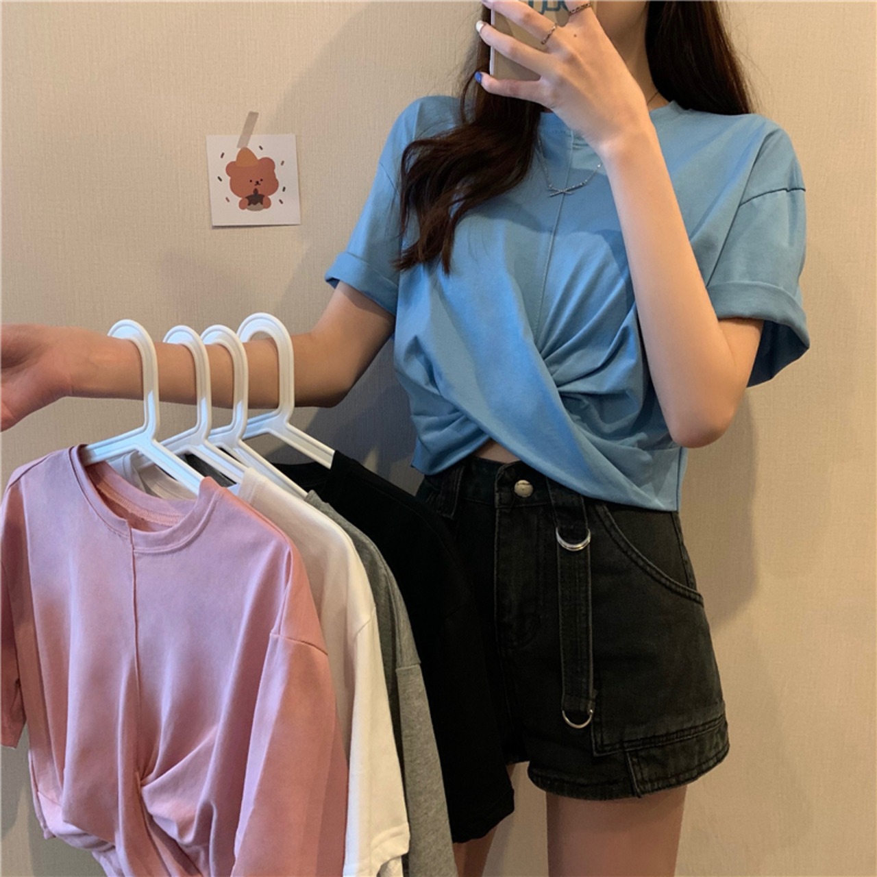 ルーズショートTシャツクロストップス 夏服 夏物 コーデ Marchs95110447347