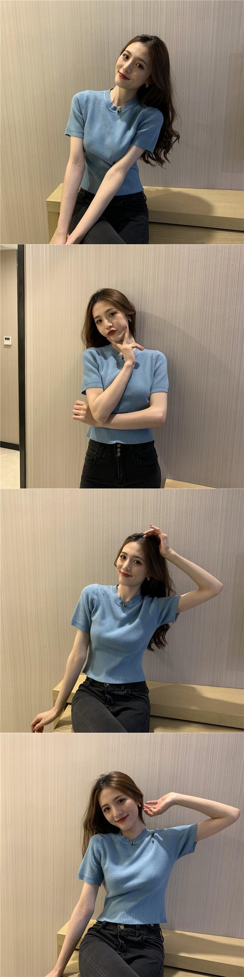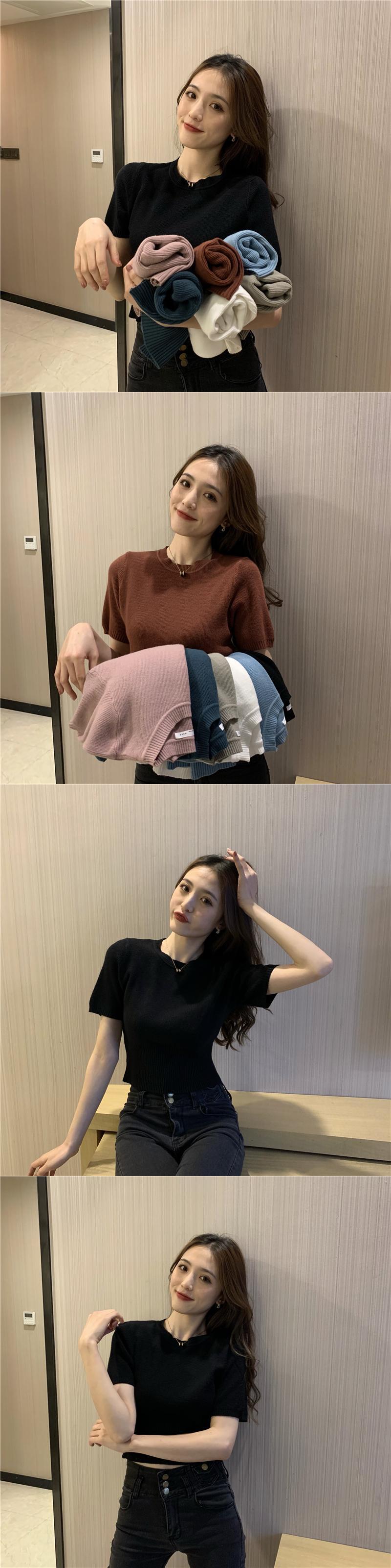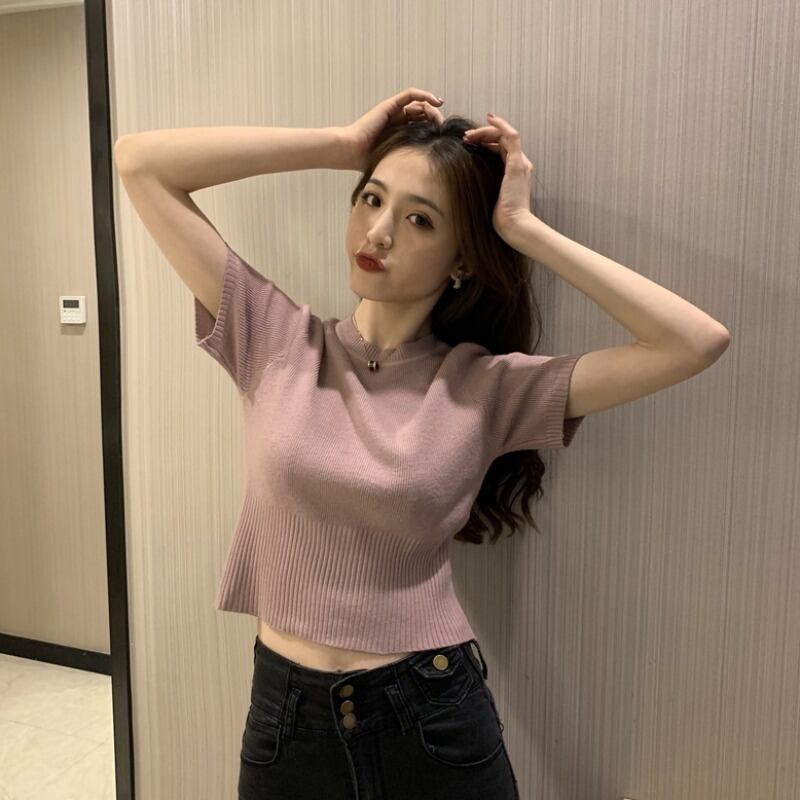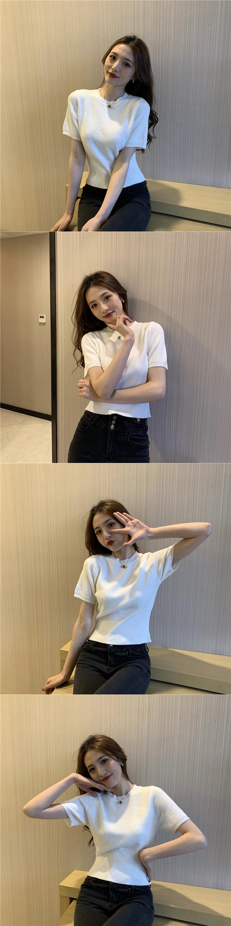 夏服ラウンドネックニットセーター Tシャツスリムフィットハイウェストウェストパンツ トップス 夏物 Oネック ウエスト コーデ Marchs79511901928