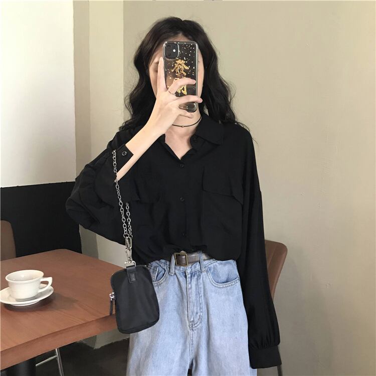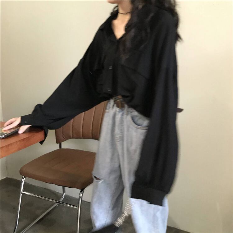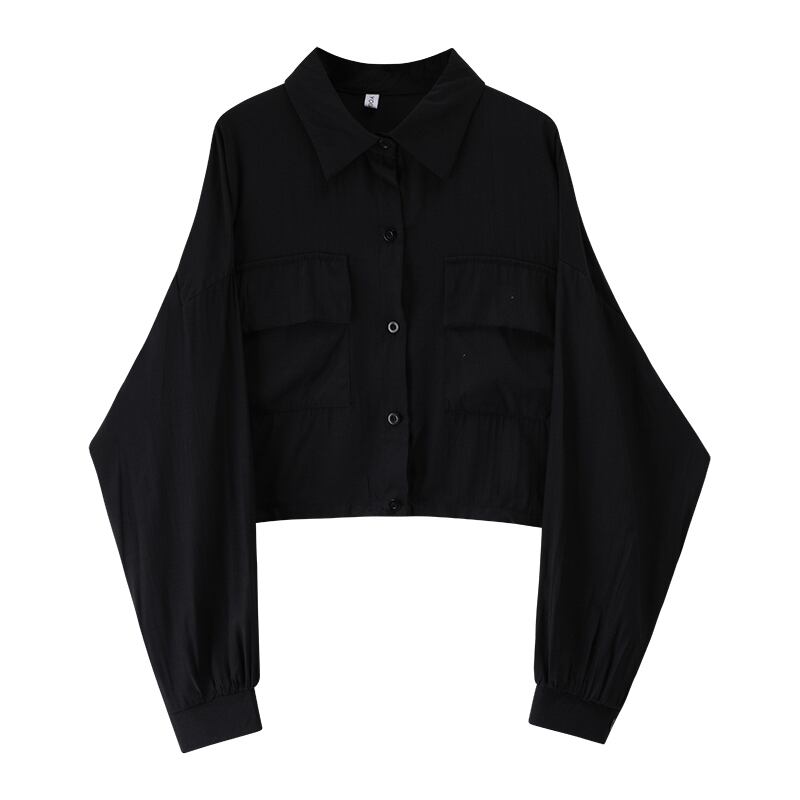 スプリングブラックシャツ ショートスタイルトップス スタンダード ロング レトロ 春物 長袖 コーデ Marchs74630900063