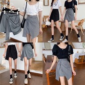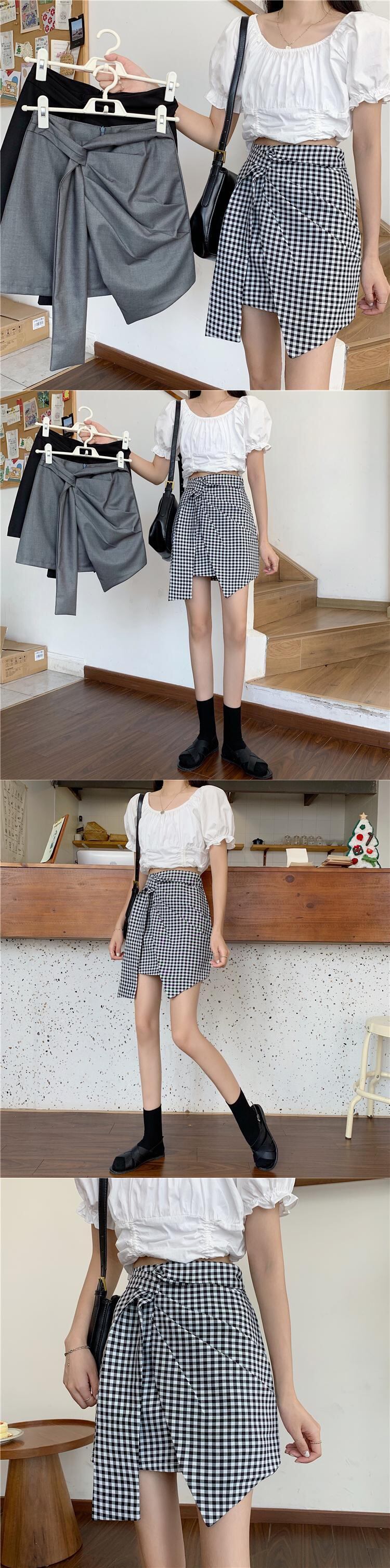 格子柄スカート スプリングスタンダードスタイルハイウェストウェスト薄手Aラインショート レトロ 春物 ウエスト コーデ Marchs58955518200