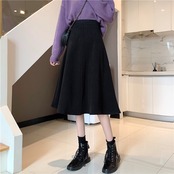 ブラックスカート スプリング秋物ハイウェストAラインプリーツロング 春物 オータム ウエスト ミドル丈 コーデ Marchs47549843105