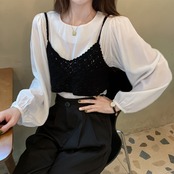 色:ブラックサスペンダー,白のシャツ,アプリコットスリング,黒いシャツ