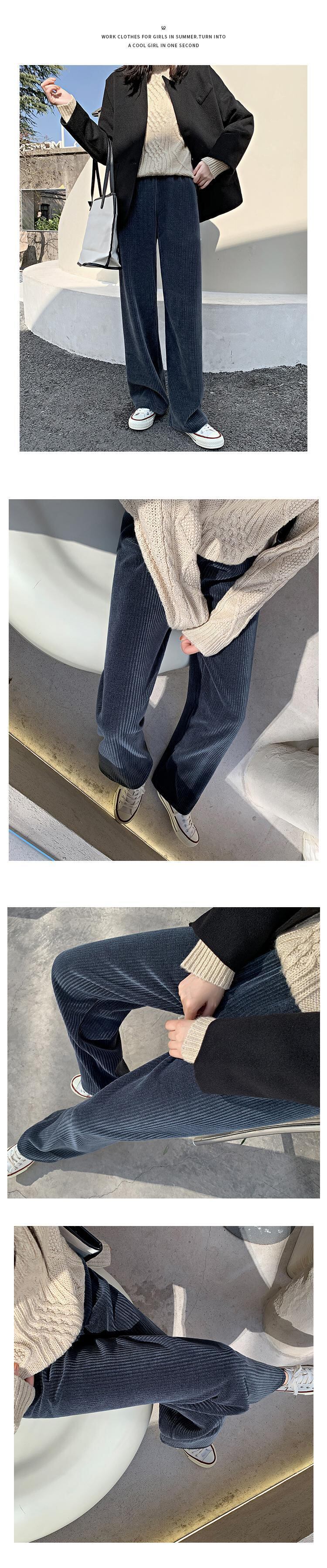 スプリング秋物コーデュロイワイドレッグパンツ ウェストブラック薄手ストライプ厚み 春物 オータム ワイドパンツ ウエスト コーデ Marchs78589169910