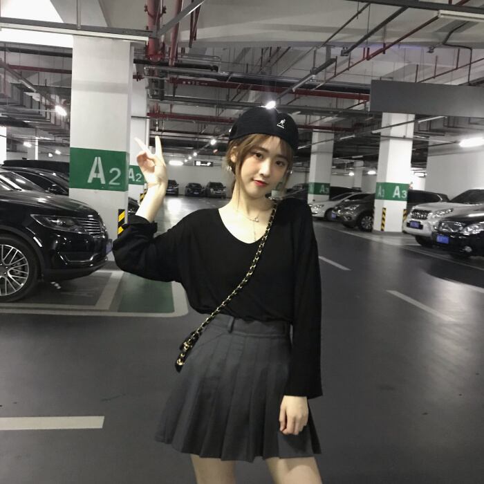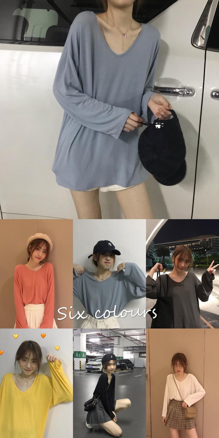 Vネックゆったりシャツ スプリング秋物薄手ソリッド カラールーズTシャツトップス ロング 春物 オータム ソリッドカラー 長袖 コーデ Marchs50005562773