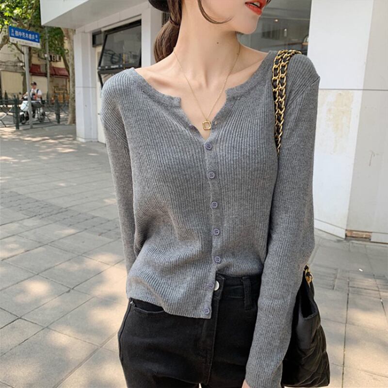 スプリング秋物Vネックセーター 薄手ソリッド カラーゆったりトップス ショートコート カーディガン ロング 春物 オータム ソリッドカラー 長袖 コーデ Marchs2880359304