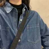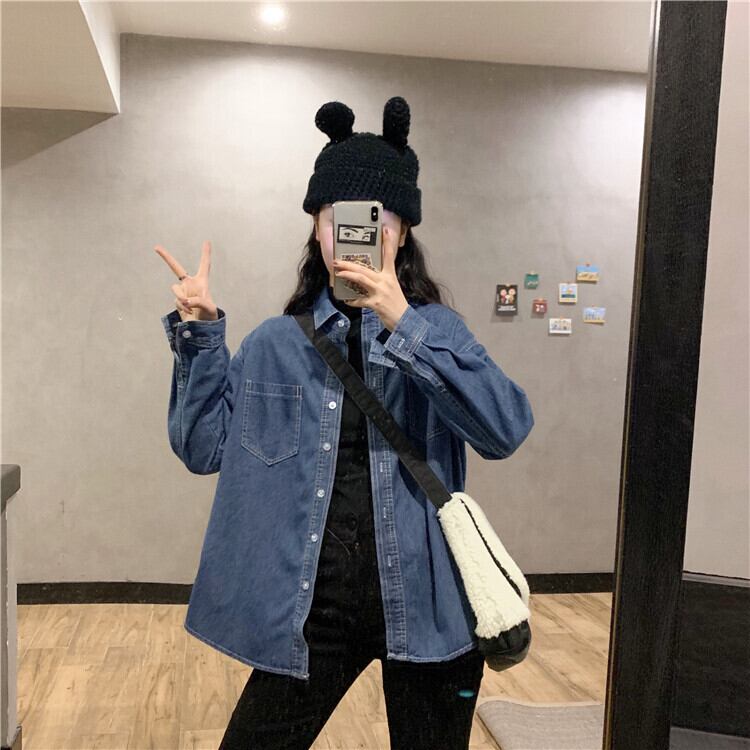 スプリング秋物シャツ レディースルーズ韓国ファッションブルーゆったりスタンダードジャケット レトロ 春物 オータム スタイル コーデ Marchs33254238338