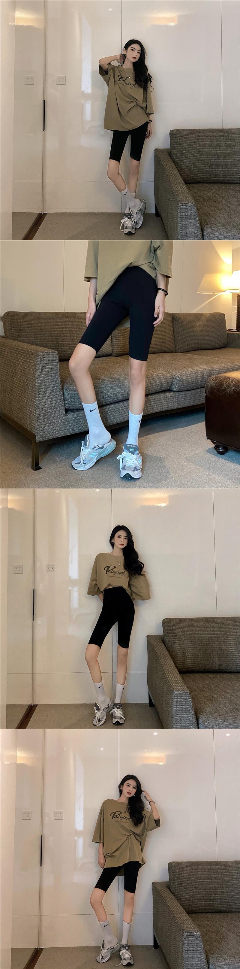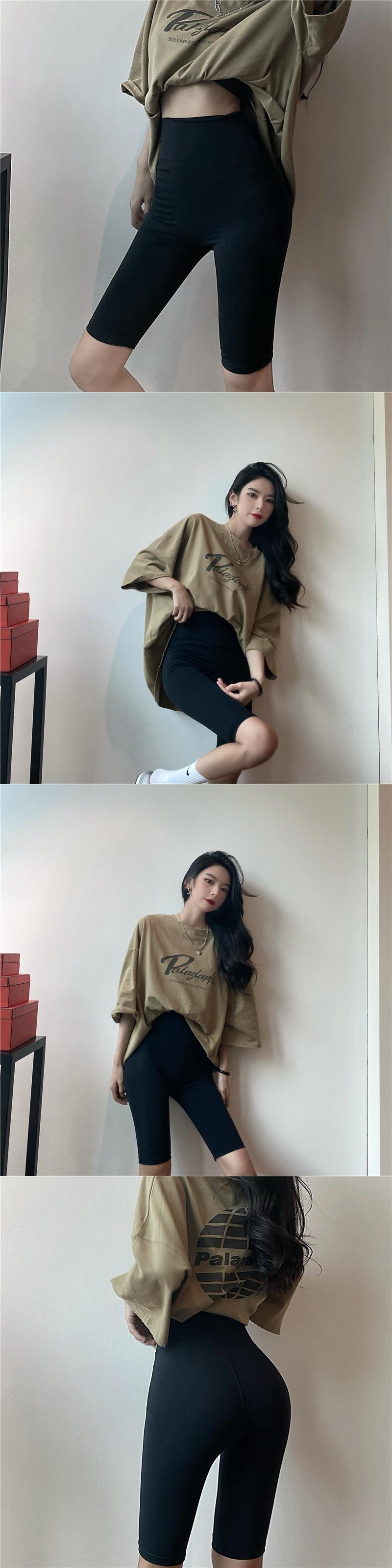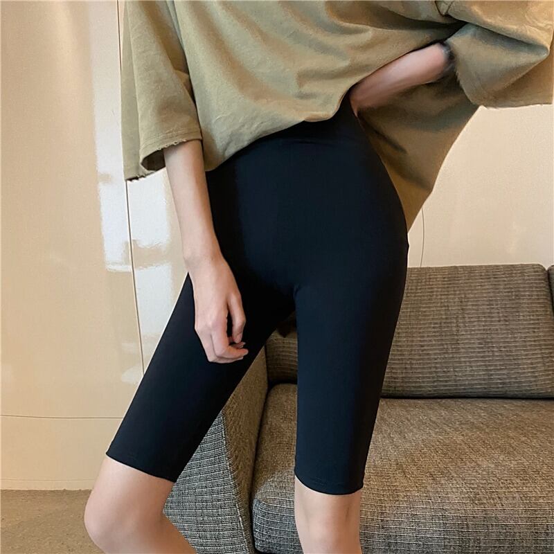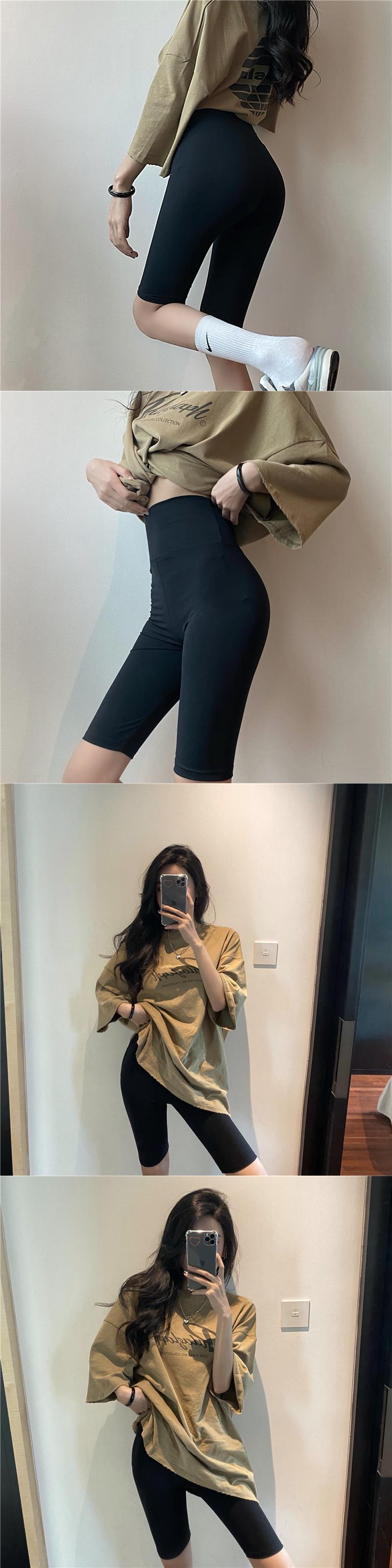 韓国ファッション薄手ストレッチレギンス パンツ カジュアルハイウェストウェストブラックショーツ 夏服 エラスティック 伸縮 夏物 スタイル ウエスト コーデ Marchs34729526751