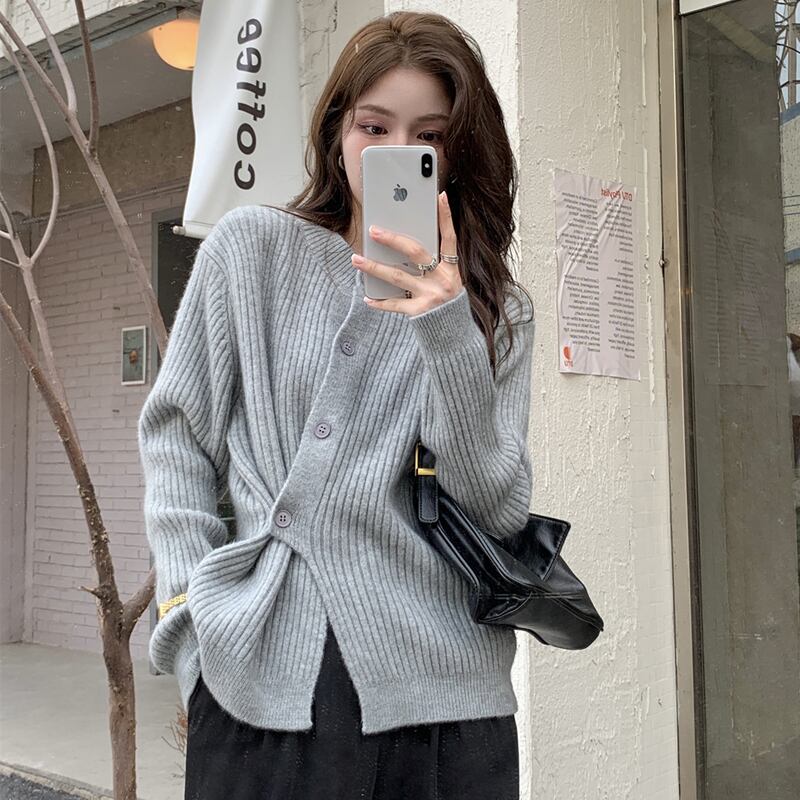 ゆったりシャツ トップス スプリングニットセーター ロング 春物 長袖 コーデ marchs6724681369107