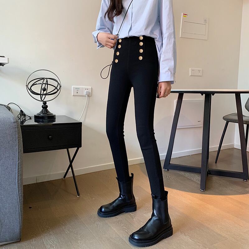 ブラックレギンス スプリング秋物厚みハイウェストウェスト薄手パンツ 春物 オータム ウエスト コーデ marchs6796712850042