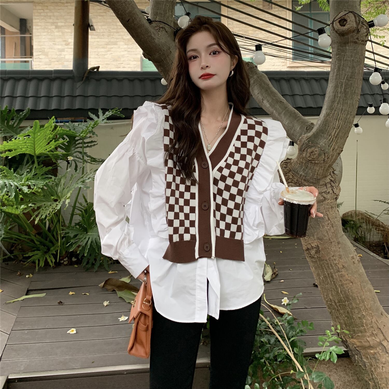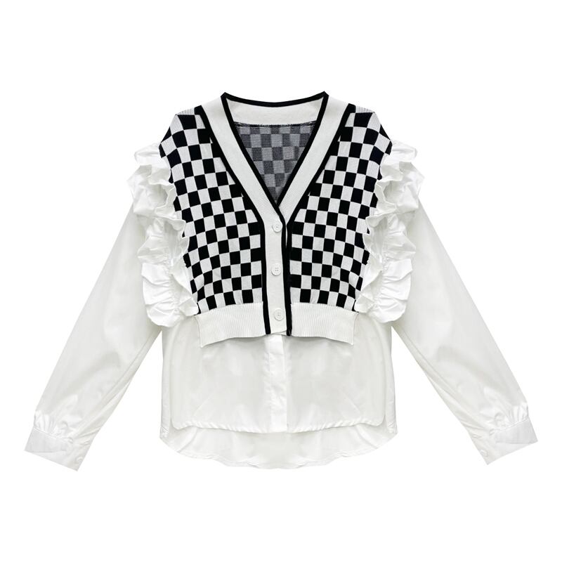 Vネックトップス スプリング秋物シャツ韓国ファッション ロング 春物 オータム 長袖 コーデ marchs6783299735998