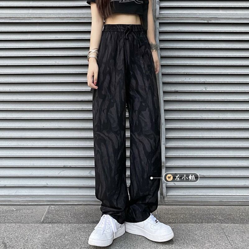 パンツ スプリング秋物薄手ルーズウェストシフォンブラック ストリート 春物 オータム ウエスト コーデ marchs6793250839148