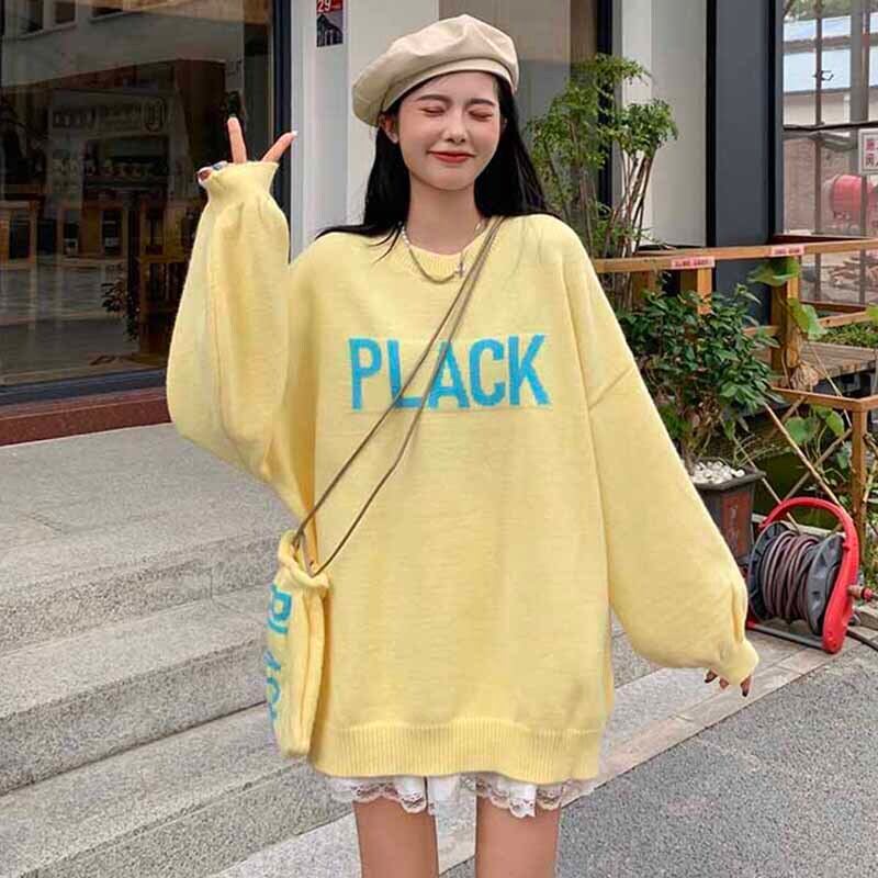 イエローセーター スプリング秋物ウィンタールーズスタイルスタンダード レトロ 春物 オータム 冬物 ミドル丈 コーデ marchs6782888457000