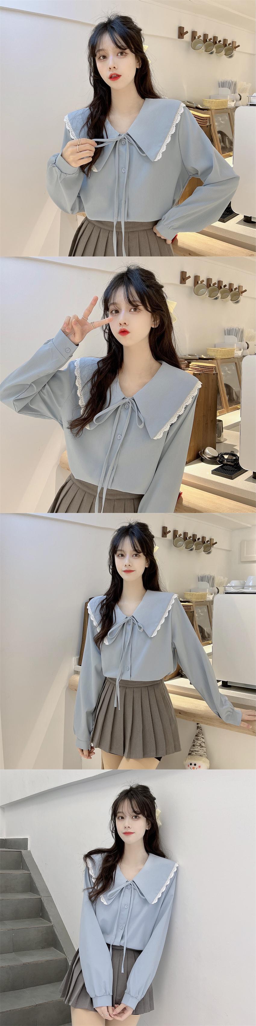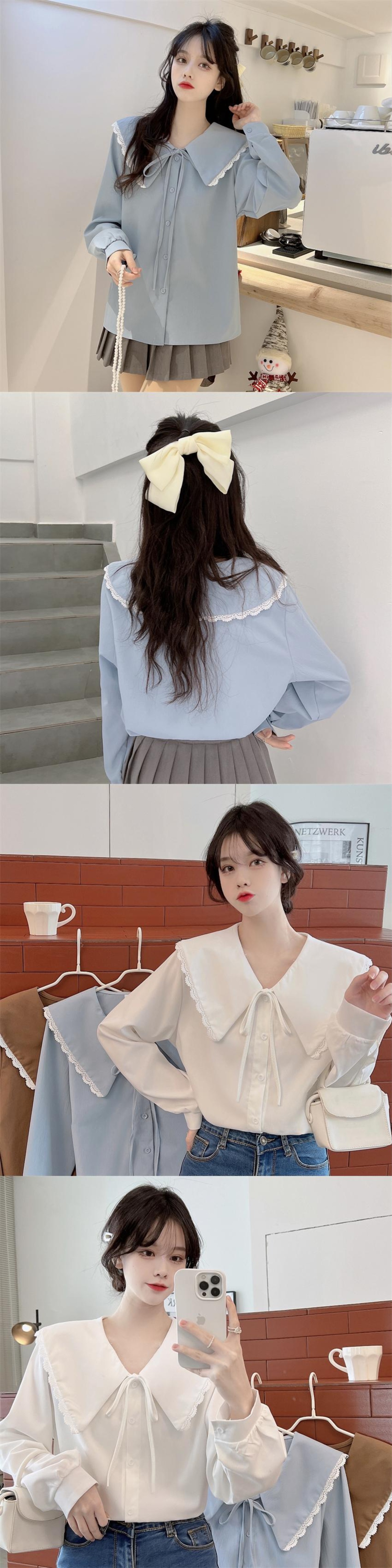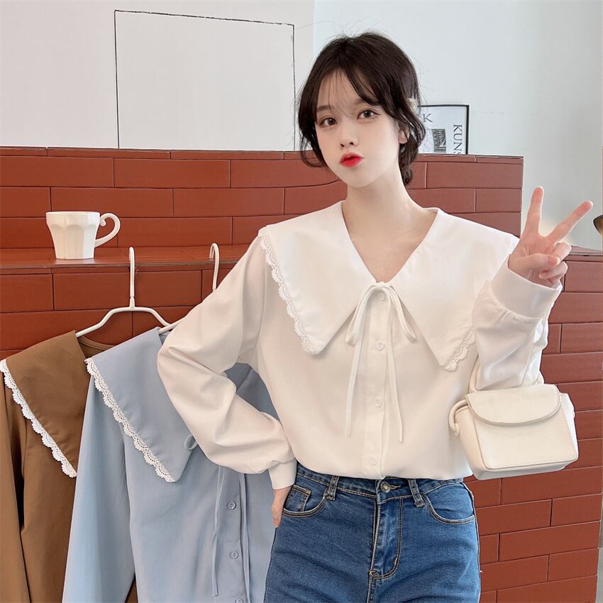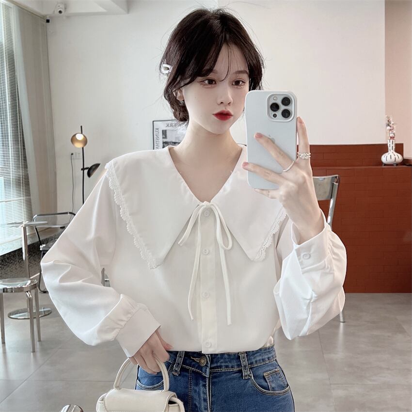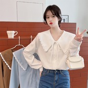 リボンカラーホワイトシャツ レディースゆったりトップス スプリングスタイル 大人ガーリー スウィート キュート カジュアル 春物 コーデ Marchs17905273135