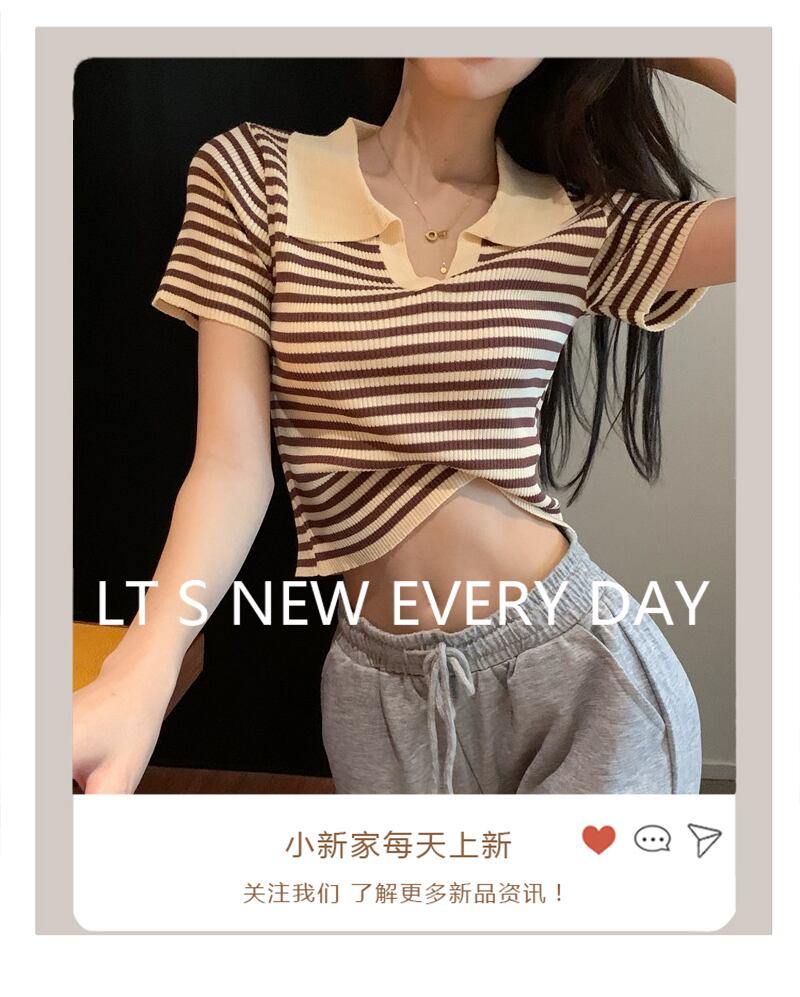 ストライプTシャツ夏服薄手カラー半袖スリーブウェストニットトップス ショート ハーフスリーブ 夏物 ウエスト コーデ Marchs91977601344