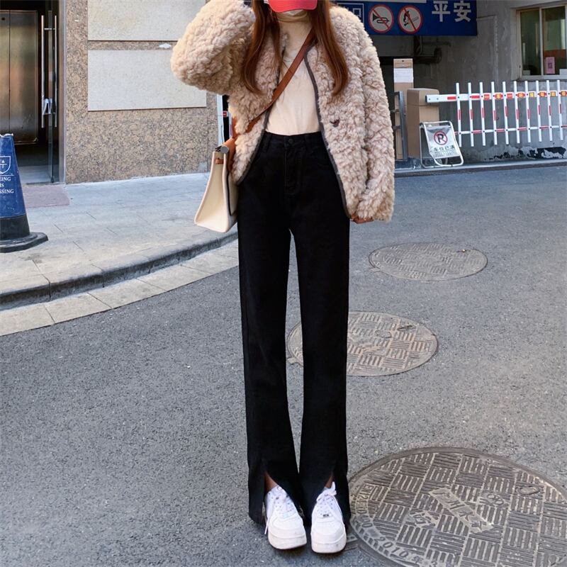 ブラックスリットジーンズ 夏服薄手ハイウェストパンツ 夏物 ウエスト コーデ Marchs41539768412