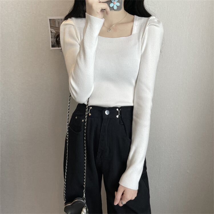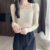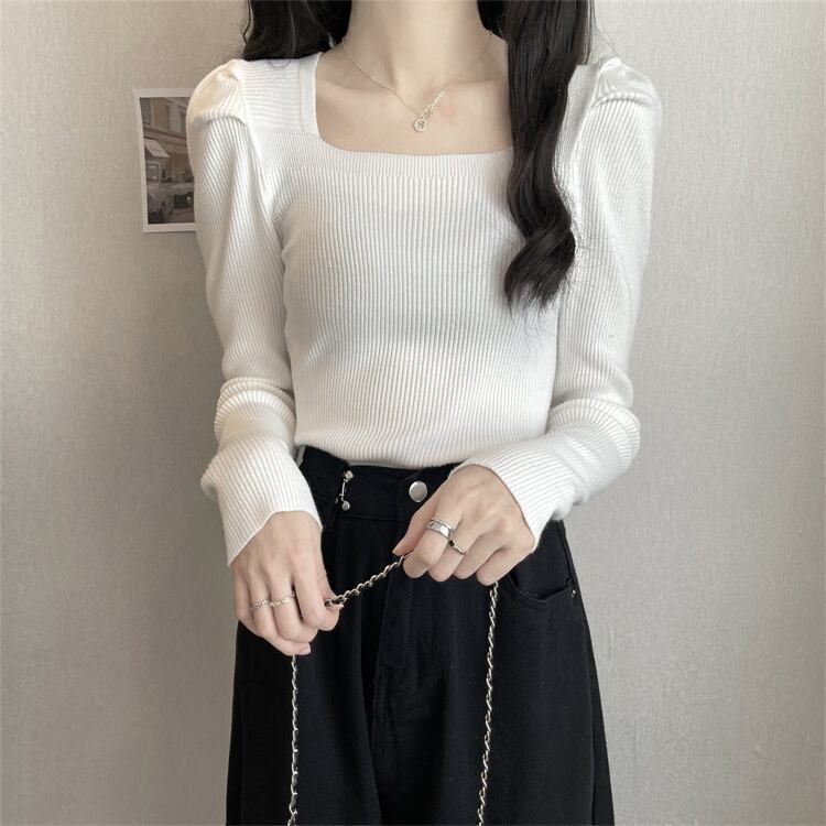 ゆったりシャツ 夏服ニットセーター ショートブラックスリーブトップス ウィンター 夏物 冬物 スクウェア コーデ Marchs66252718467