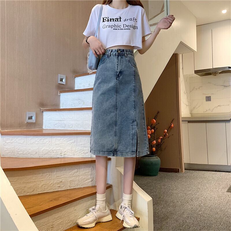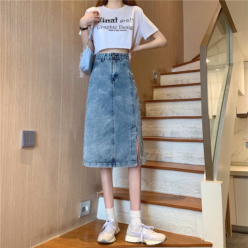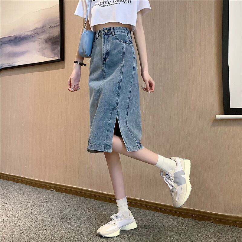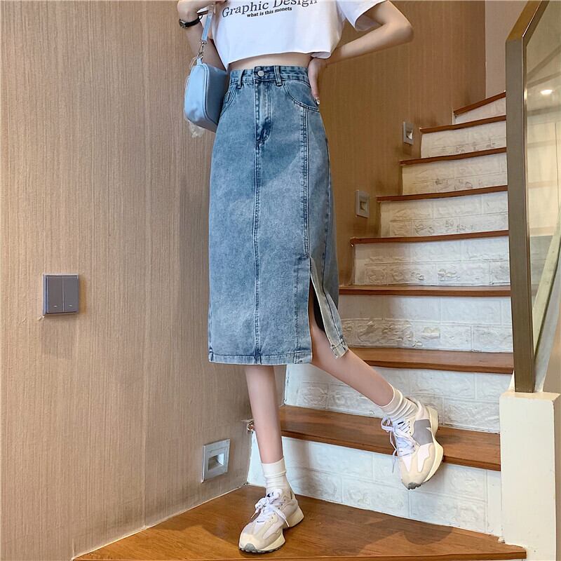 韓国ファッションハイウェストウェストサイドスリットスカート 夏服Aライン 夏物 スタイル ウエスト ミドル丈 コーデ Marchs42738639486