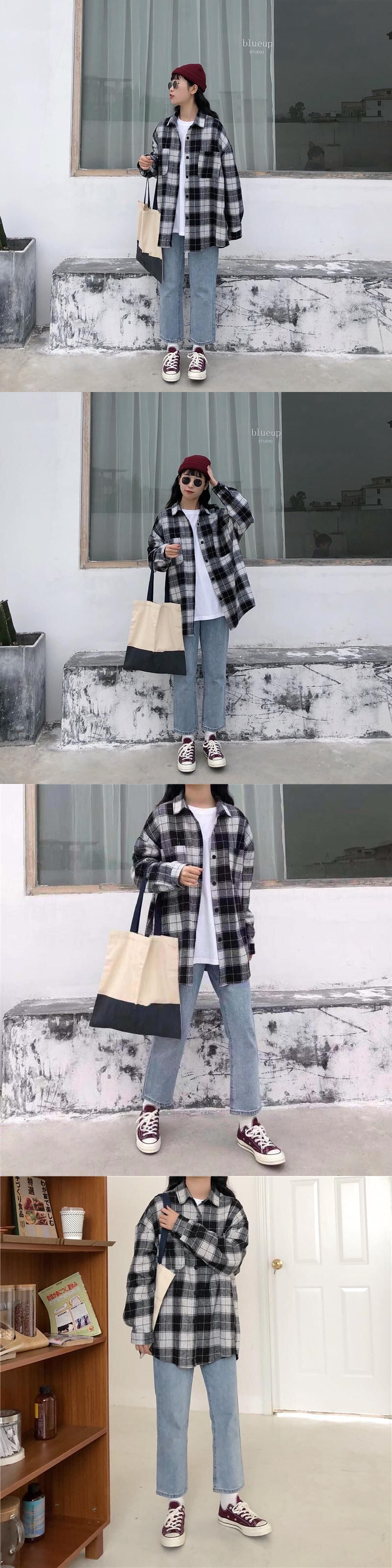 格子柄シャツ スプリング秋物韓国ファッションスタンダードスタイルカジュアルルーズジャケット ロング レトロ 春物 オータム 長袖 コーデ Marchs67297312330