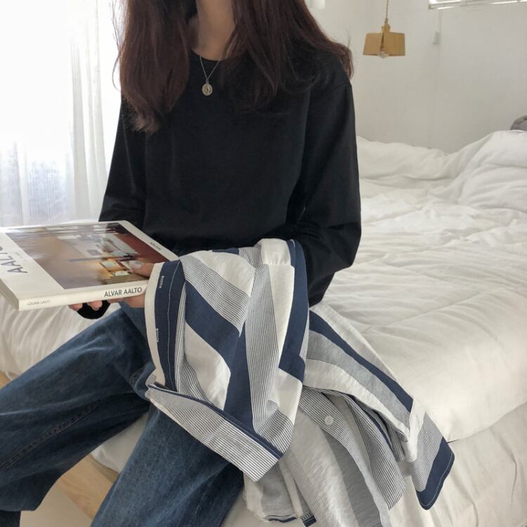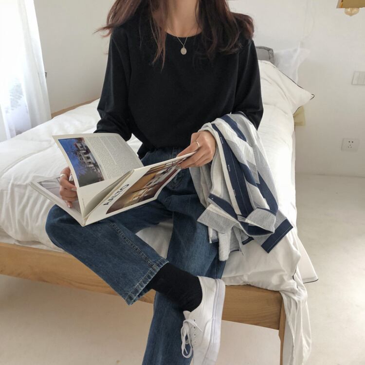 ホワイトTシャツスプリングNEWルーズ薄手ソリッド カラーラウンドネックトップス ロング 春物 Oネック ソリッドカラー 長袖 コーデ Marchs68795023420