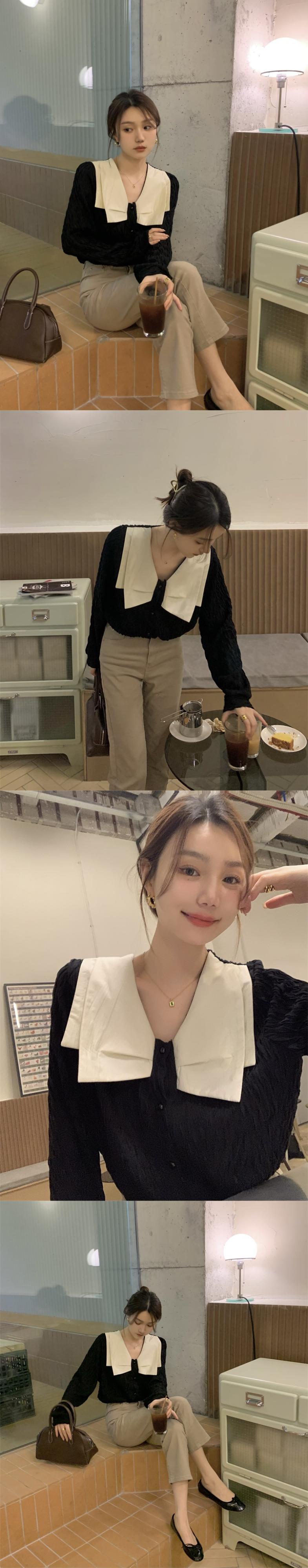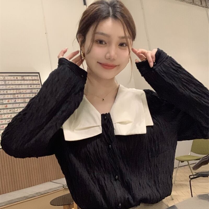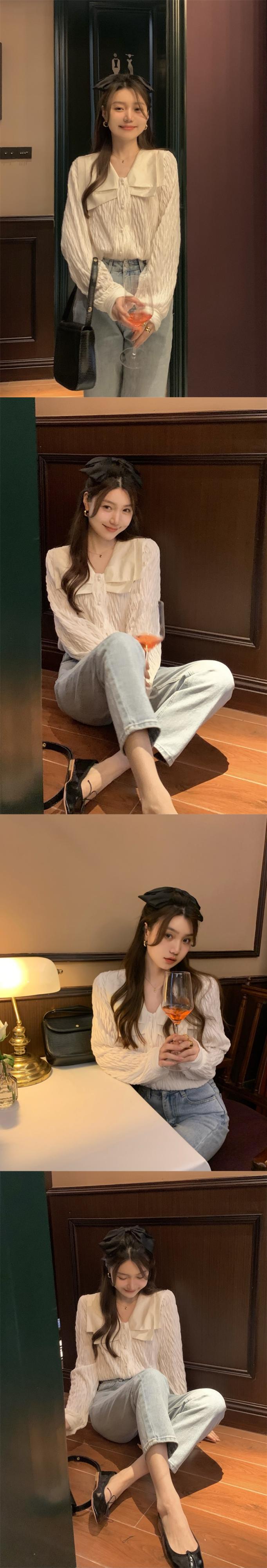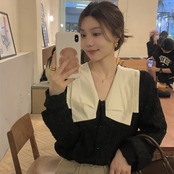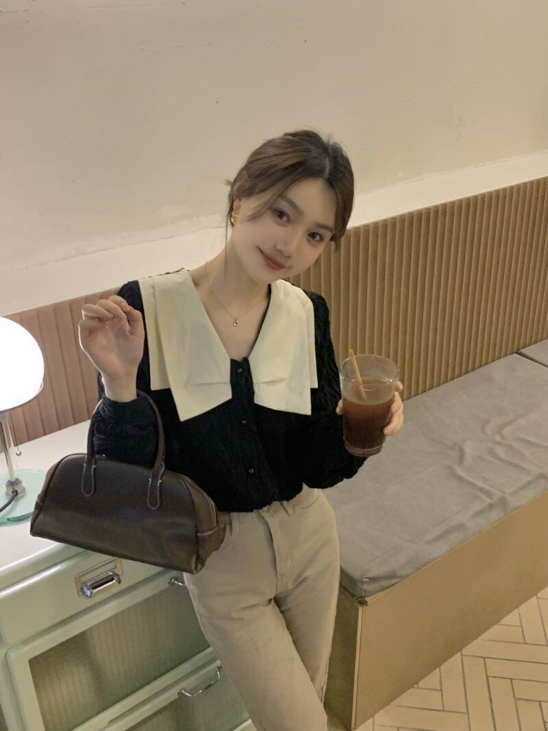 スプリング薄手トップス シフォンシャツ スタンダードカラー レトロ 春物 コーデ Marchs6538355415