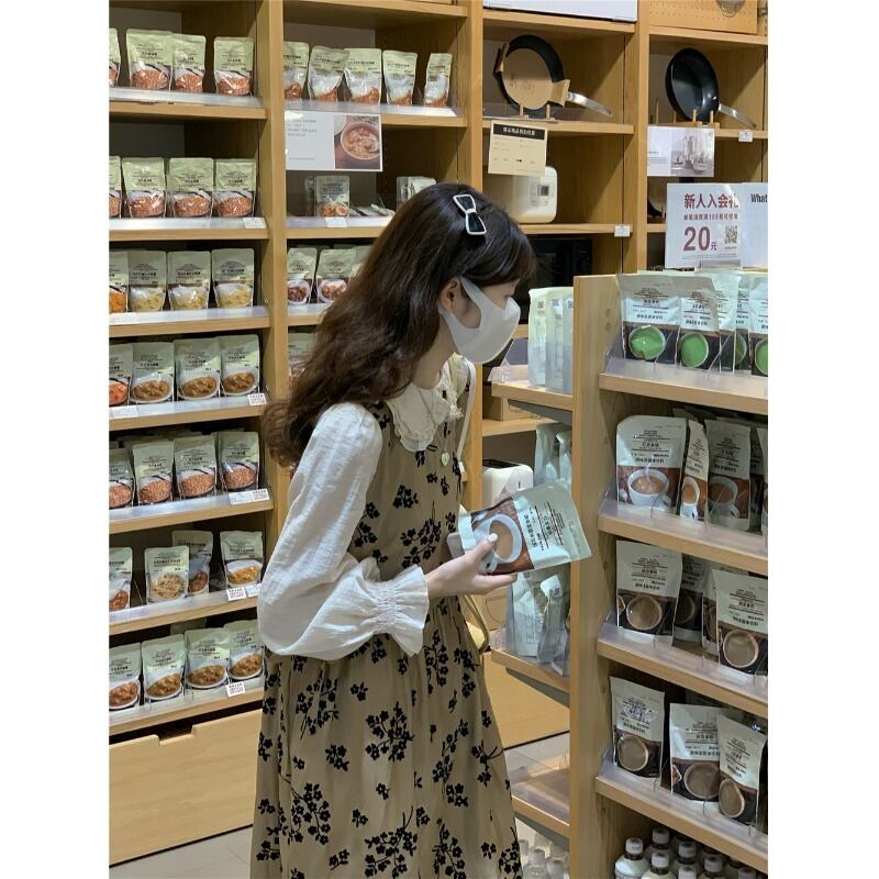 スタイルカラーワンピースレディーススプリング秋物ルーズフローラルロング ストリート 春物 オータム 花柄 コーデ Marchs22953155686