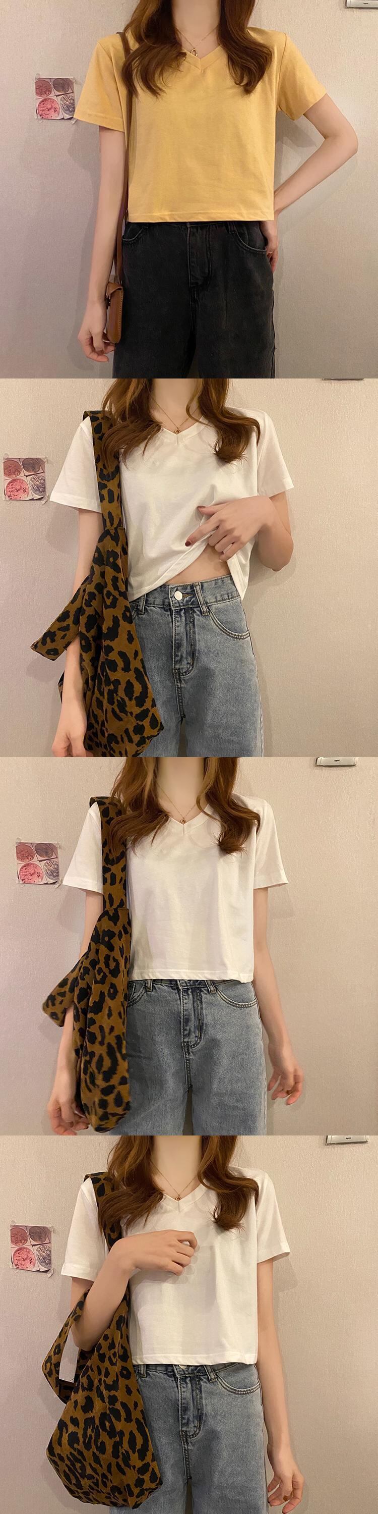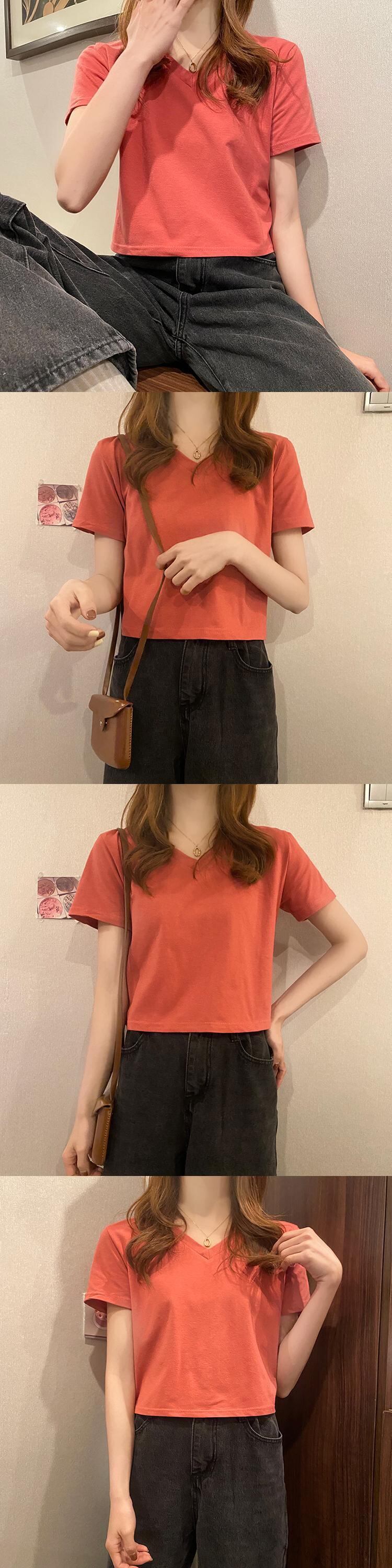夏服韓国ファッション薄手VネックショートTシャツトップス NEW 夏物 スタイル コーデ Marchs93435590776