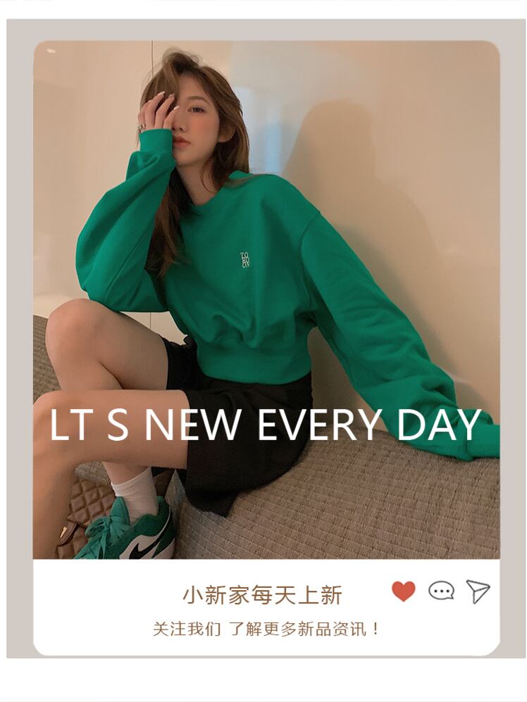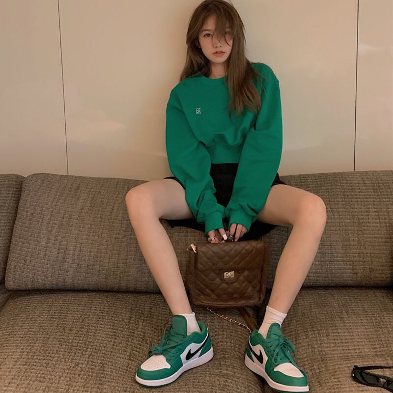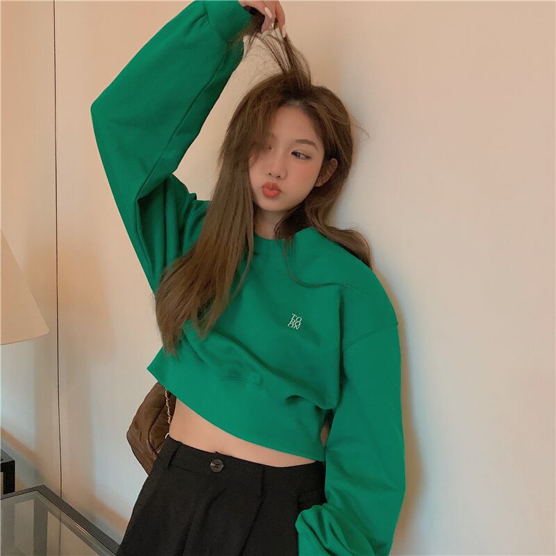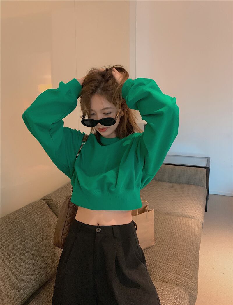 スプリング秋物ラウンドネックグリーンセーター ショートスタイルトップス NEW ストリート 春物 オータム Oネック コーデ Marchs41993988297